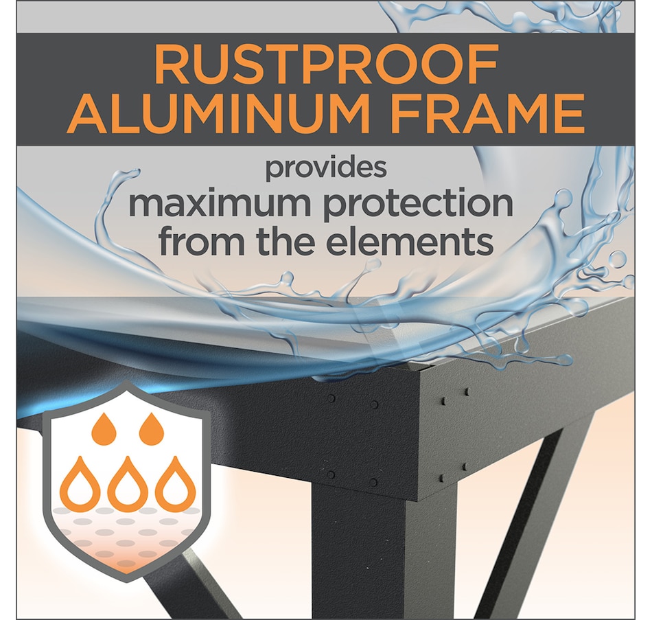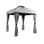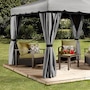 The Roma gazebo features a polyester roof designed to protect you on long days in the summer sun. It is engineered to ensure simple set up while its lightweight, powder-coated aluminum frame provides strength and stability. The Roma is equipped with a stylish modern frame, polyester fabric top, along with tasteful polyester curtains and nylon mosquito net curtains, allowing you and your family proper ventilation and protection all summer long.