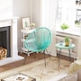 Thanks to its powder-coated solid steel legs and light-but-wear-resistant PE cord, each leisure chair supports up to 286 lb. The tempered glass top and strong structure of the side table holds up to 66 lb. Best of all, this set is versatile: put it in your sunroom, bedroom, or the corner of your living room. The airy, distinctive design will instantly transform any small space into the most coveted corner without making it feel cramped.