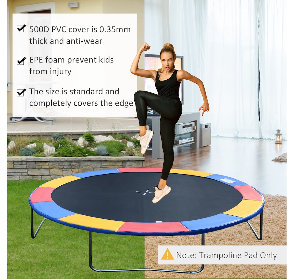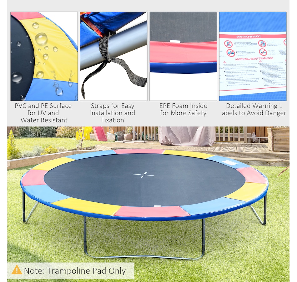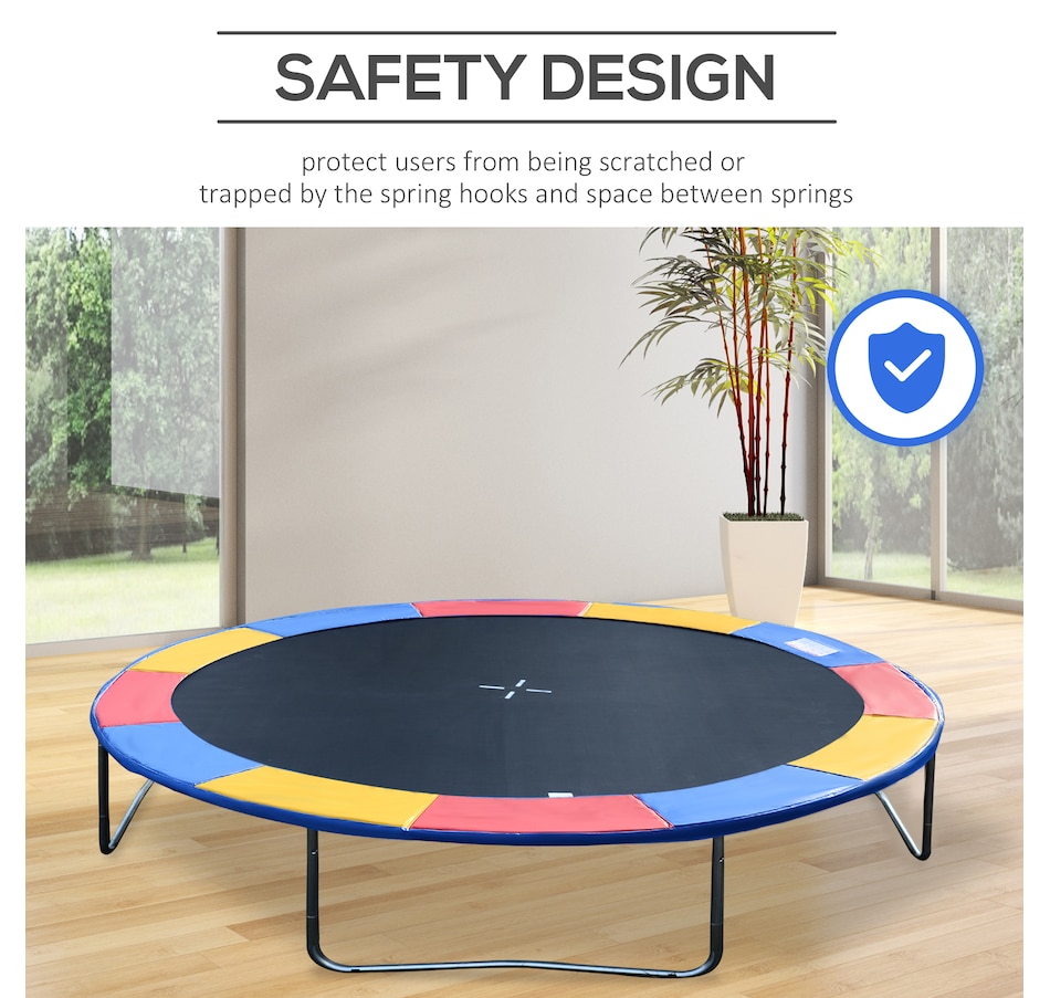 Safety, safety and safety!!Safety is so important for us no matter when we are working or having fun together. If your pads have shielded you for quite long and have been in torn or ruptured condition, substitute this safety pad with one-piece design for the old one! It is able to give the maximum protection to the kids, teens or adults from being scratched or trapped by the spring hooks and space between springs. And the pad will not absorb water, mildew, crack or lose shape!