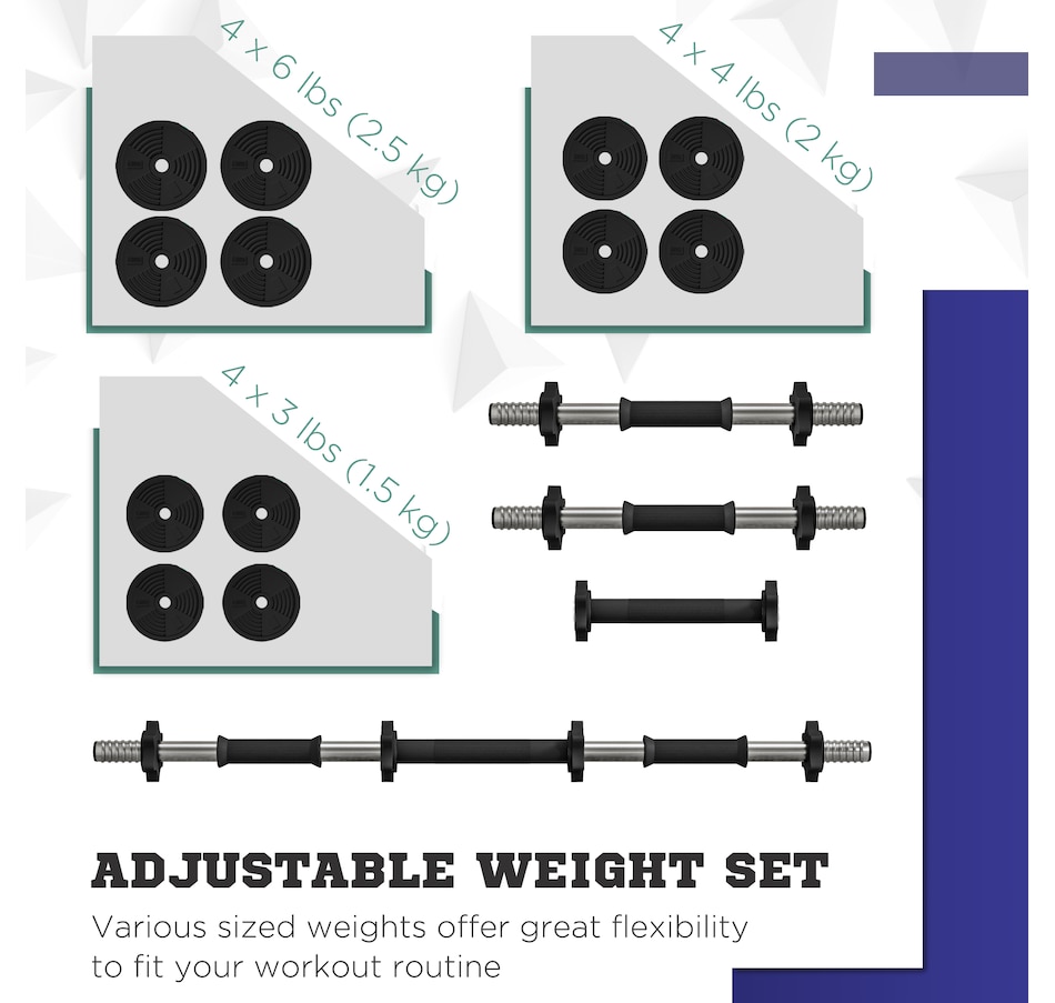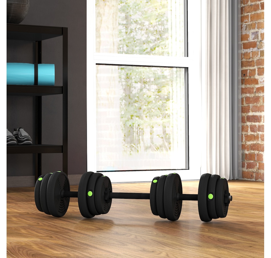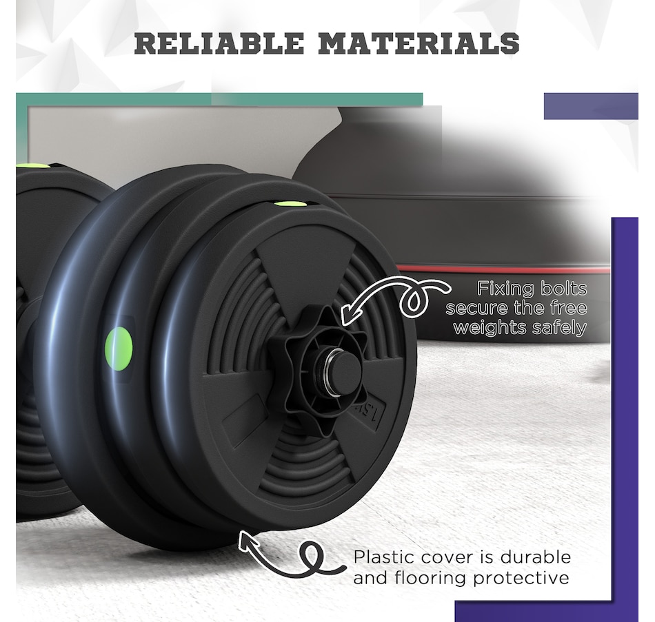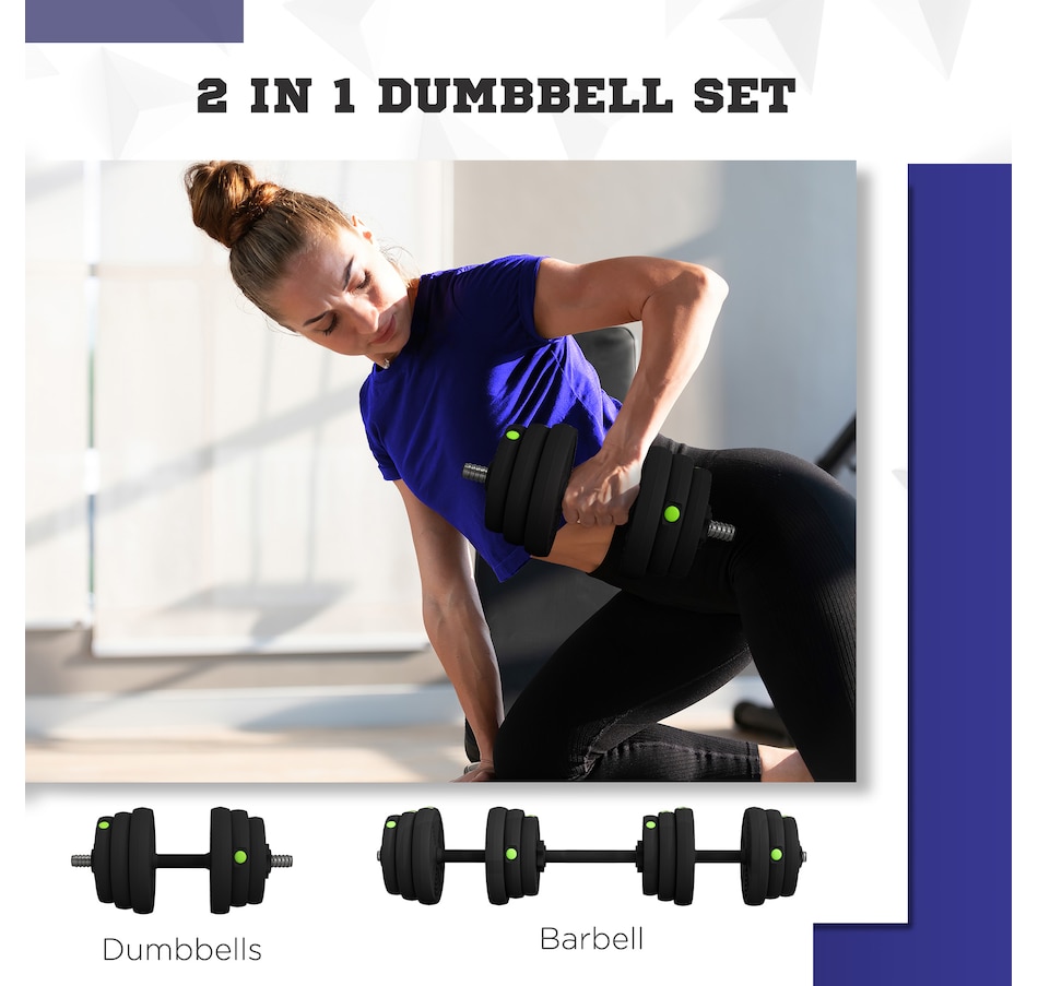 Transform your workout with the Soozier 2-in-1 weight set. Switch seamlessly between dumbbells and a barbell to diversify your routine, adjusting the weight to suit your strength level. The non-slip handlebars ensure a slip-free grip, while the plastic surface and secure fasteners keep your workout smooth and safe. Dive into your fitness journey with this versatile adjustable weight set.