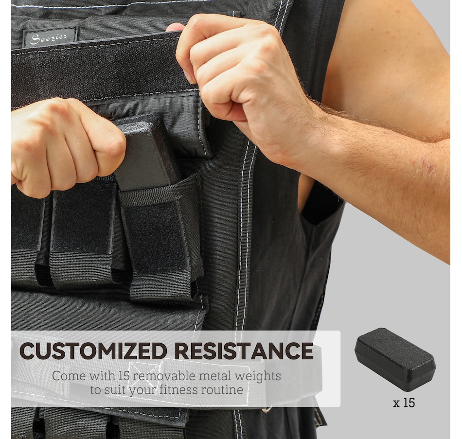 Discover the Soozier weighted vest, designed to adapt as you progress. Customize your training intensity with 15 removable 2 lb (0.95 kg) metal weight bags, ensuring an excellent fit for every workout. Experience comfort with a secure strap and broader, thicker shoulder support, making it a versatile weight vest for both men and women serious about fitness.Features: