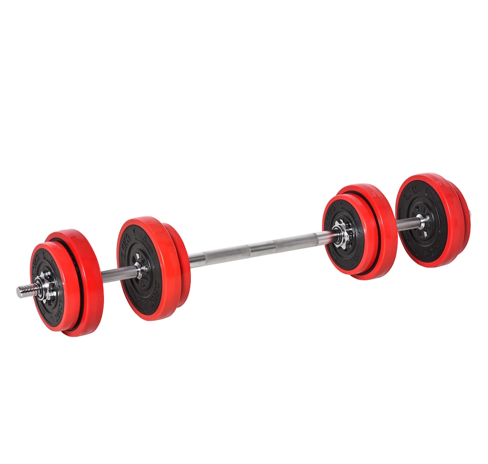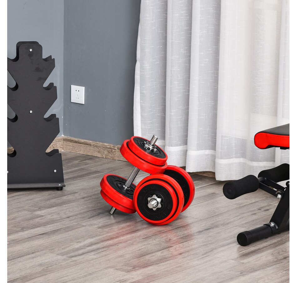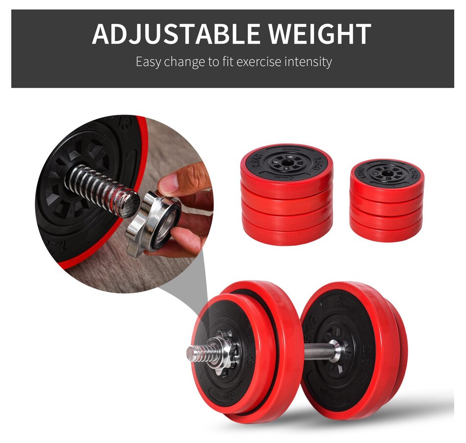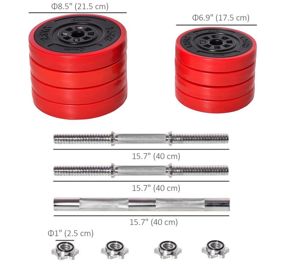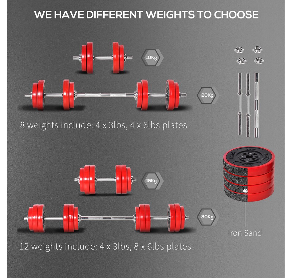 Build your body with the Soozier 44 lbs dumbbell and barbell! Create your home gym in seconds with easy assembly. This weight set lets you quickly alternate between dumbbell and barbell exercises to focus on muscle strength, endurance, or cardiovascular health. The weights are made with iron sand and polypropylene to protect your floors, making it suitable to use in your home gym. Adjust the sports equipment to suit your needs and get your workout on.