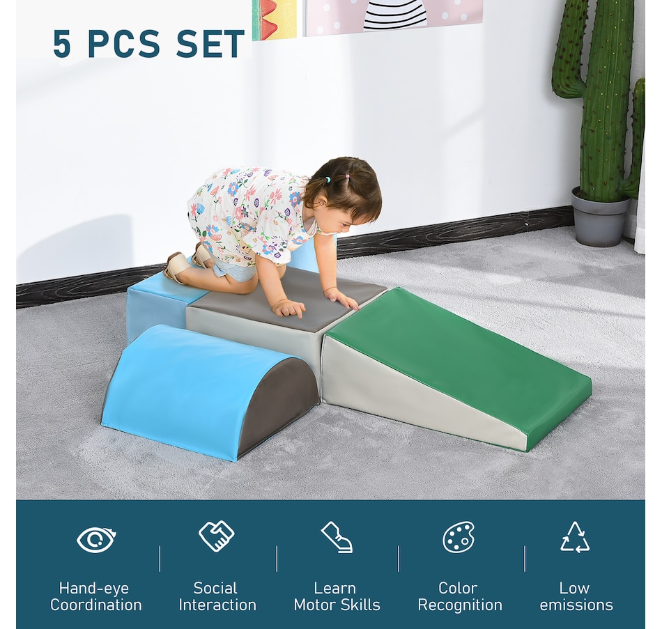 Description:Want to find a safe and fun toy for your child? Come try our soft toy, it can be effectively develop dexterity, fine and gross motor skills, spatial reasoning, creativity, and other sensory skills, colors that stimulate little minds and encourage early color identification. Helps to practice babies and toddlers crucial developmental skills, such as balance and coordination, they will enjoy the adventure of jumping, climbing, sliding and crawling on soft foam play equipment. This will be a perfect gift to accompany their growthFeatures: ● Perfect for use in school, daycare, or at home ● Designed to let infants and toddlers climb, crawl, explore and slide ● Custom configurations bring a lot of fun for little ones ● Constructed of soft and high-density EPE foam ● You can easily wipe them with a mild soap and water solution ● No assembly neededSpecifications/Dimensions: ● Color: Multi-color ● Material: PU, EPE ● Square block: 16"L x 16"W x 8"H ● Rectangle block: 8"L x 8"W x 16"H ● Crylinder:Φ8" x 16"L ● arge half cylinder: 16"L x 16"W x 8"H ● Ramp: 16"L x 24"W x 8"H ● Certificated age: 18 months ● Net Weight: 7.7lbs.5 x soft foam toys