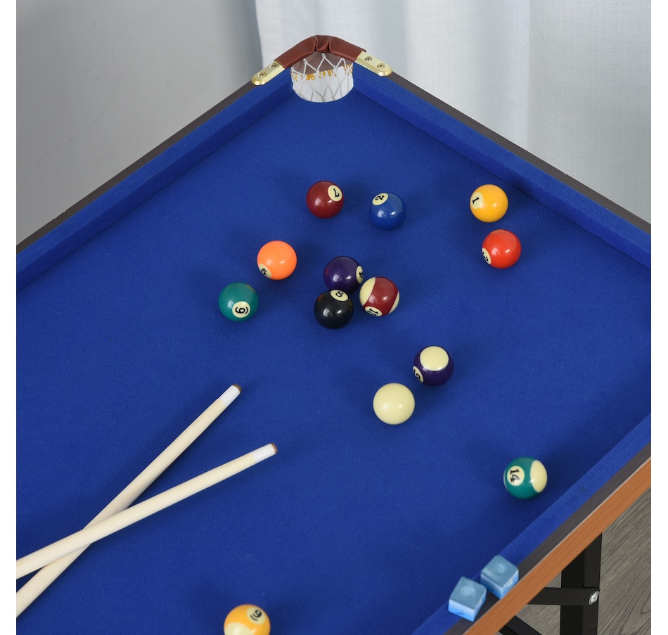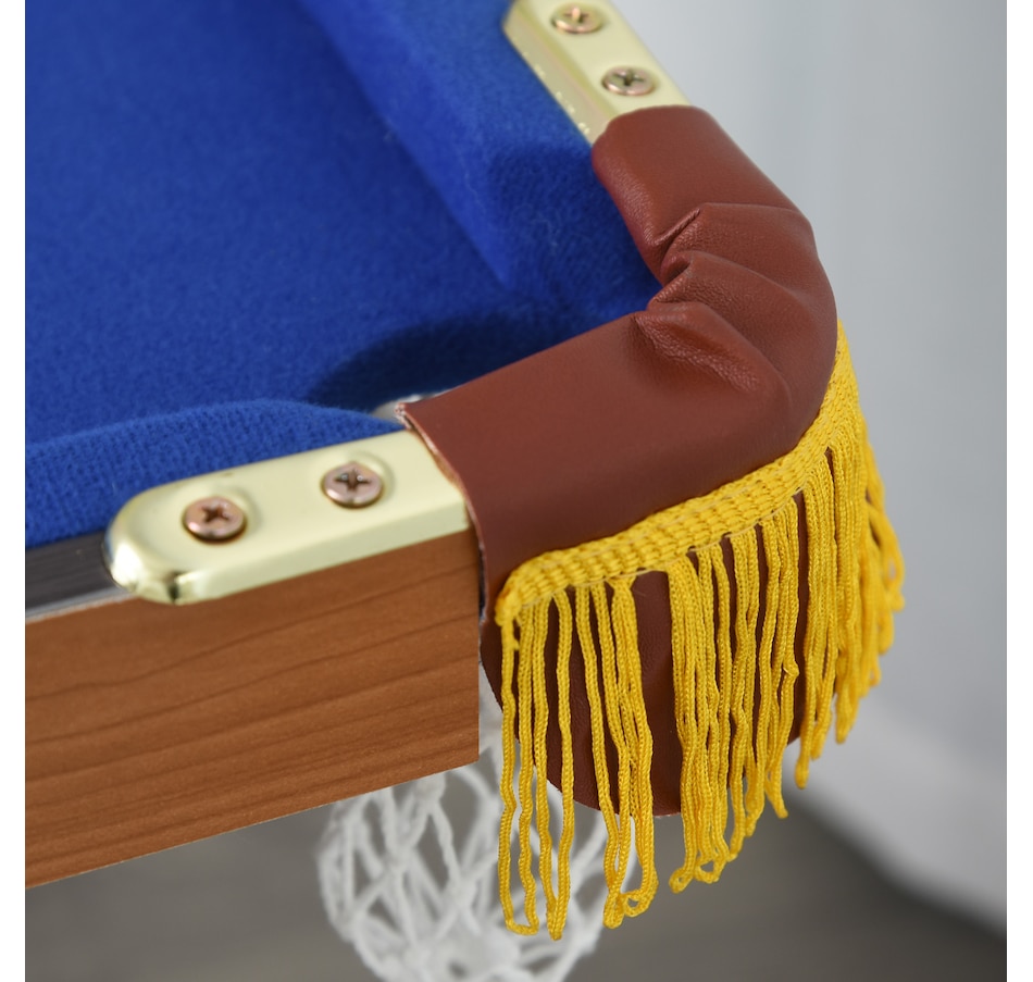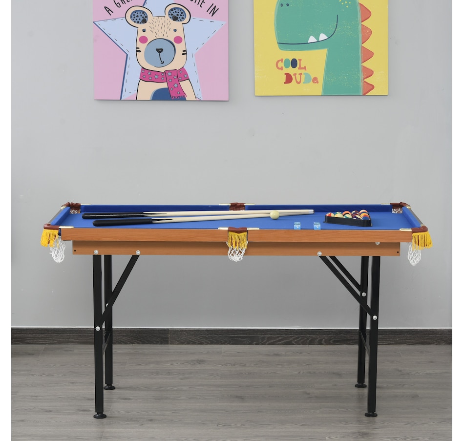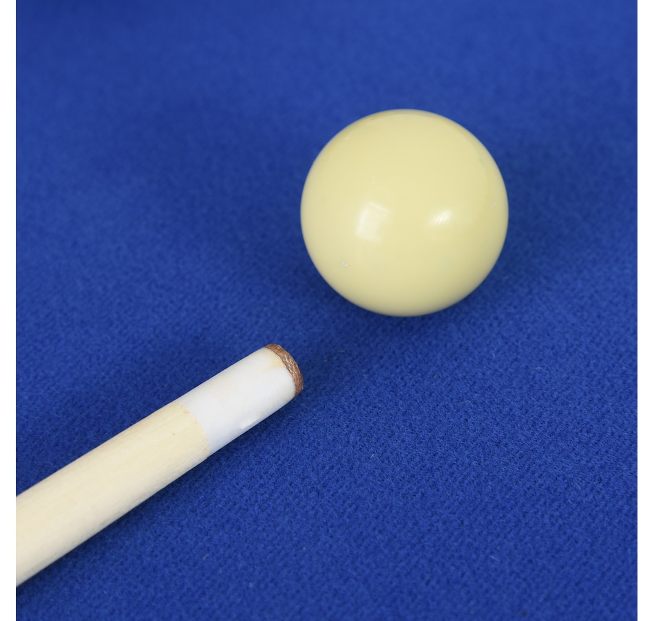 Prepare for some fun with this foldable, miniature Junior Pro Pool Table. With its compact size, it is big enough for a good, competitive game of pool, but small enough to easily store when folded. Whether it's a gift for the family or an entertaining night in it is perfect for any home! Included in this package are all the billiards balls and quality cues necessary for play.Features: