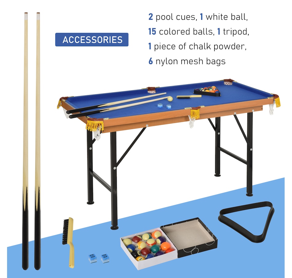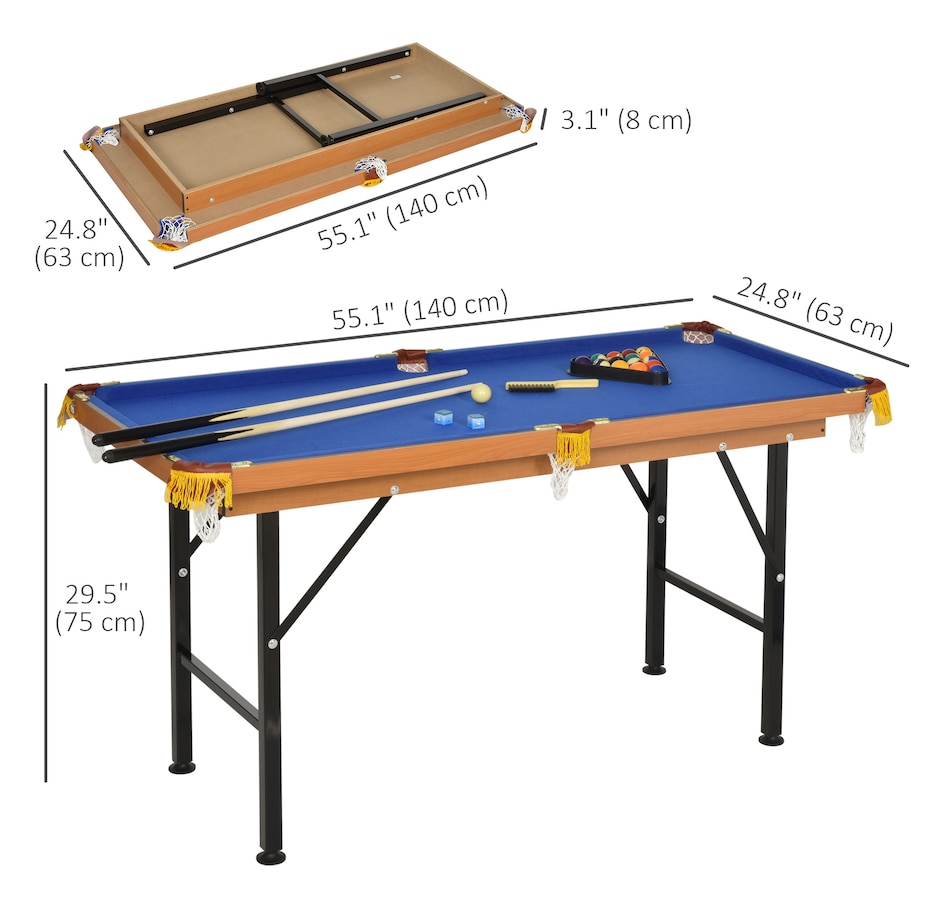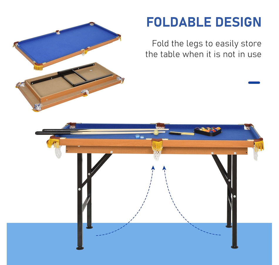55" Portable Mini Billiard Table, Foldable Pool Table, Blue
