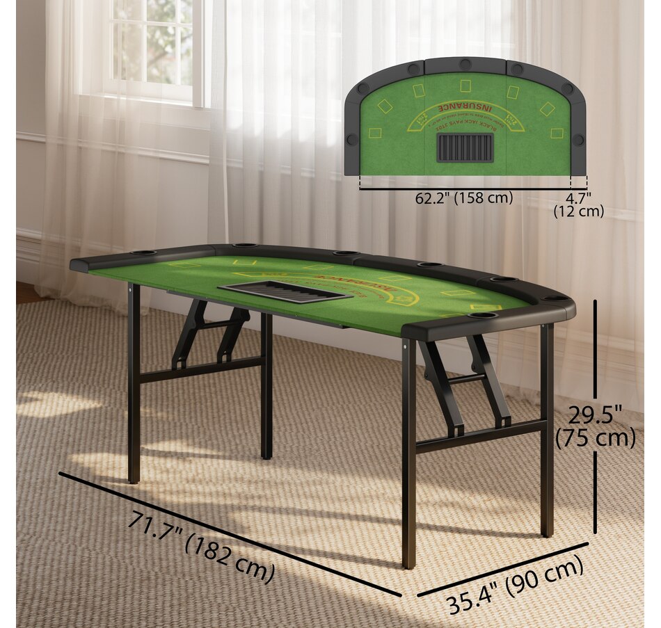 72" Folding Poker Table, Portable 8 Player Blackjack Table, Green
