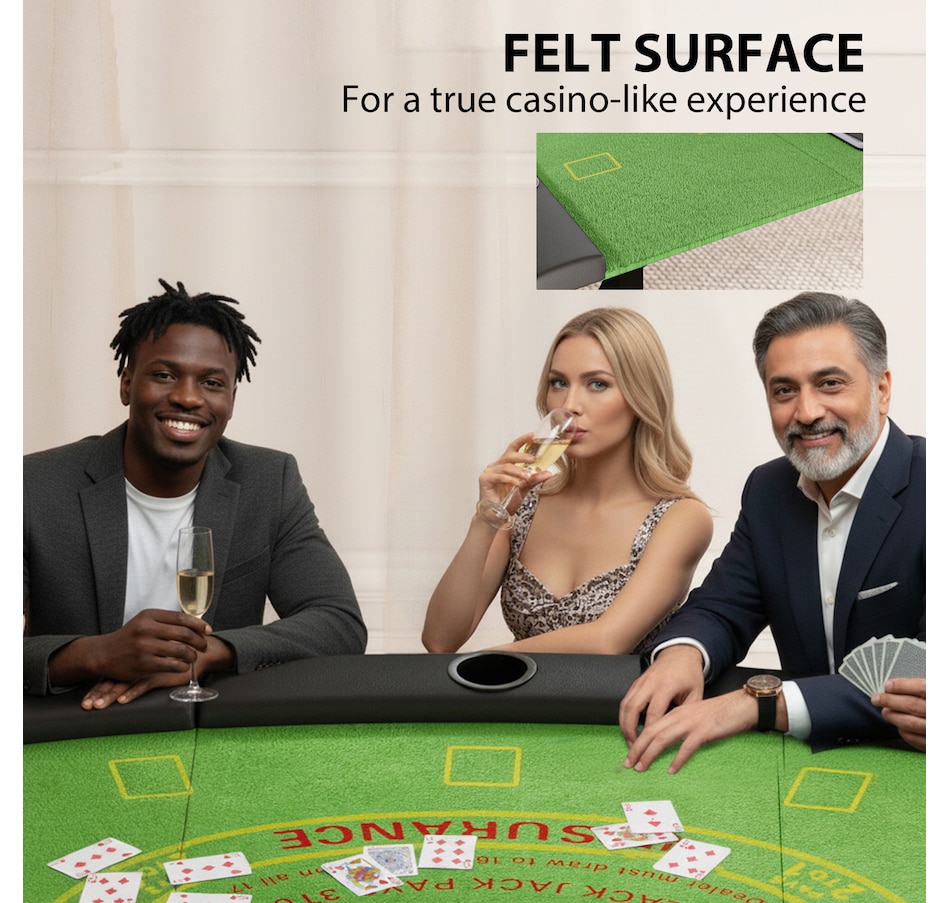 ● Casino-style felt with padded armrest rails;