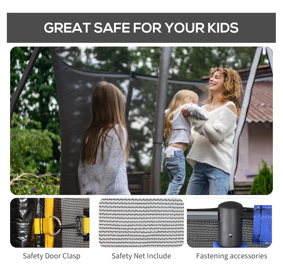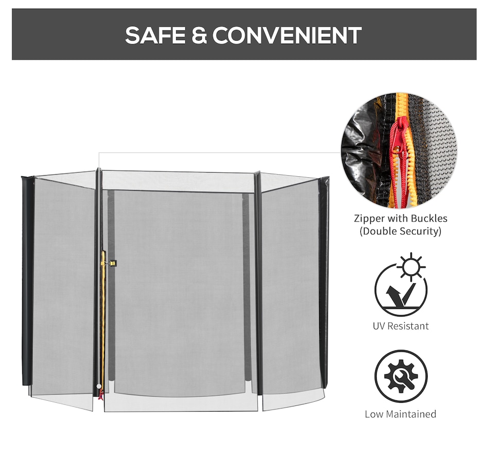 ● Safety enclosure fits 8' round trampoline with 3 arched support or 6 poles