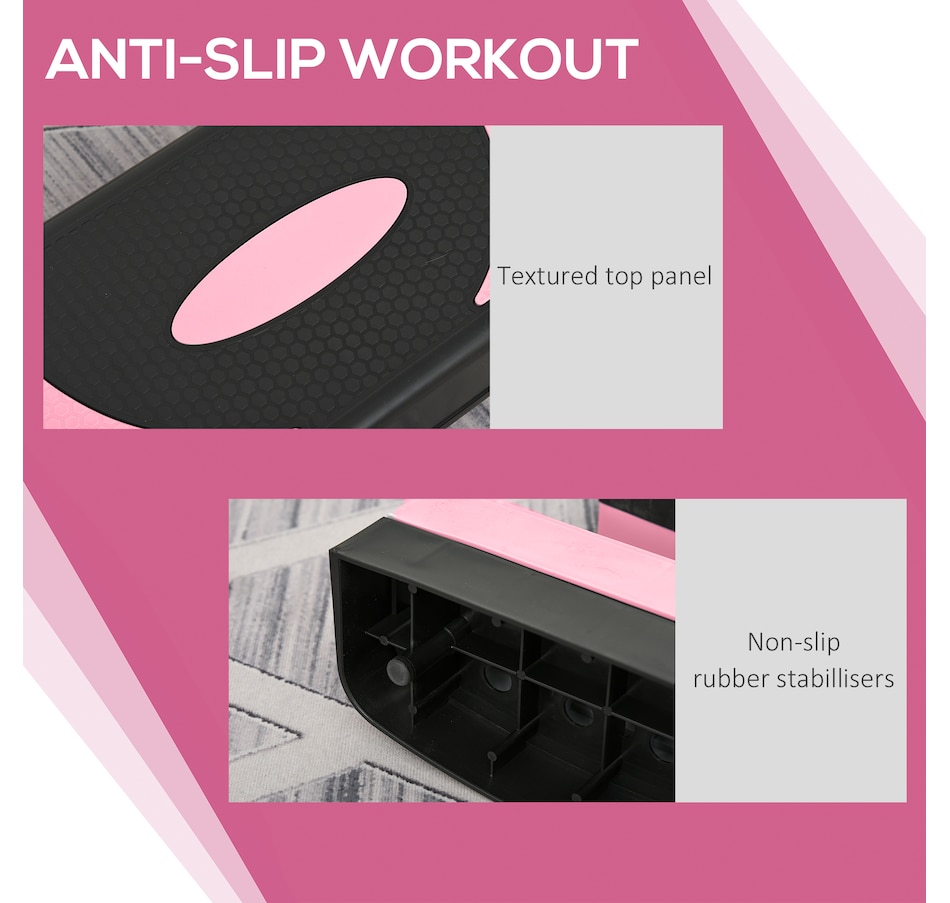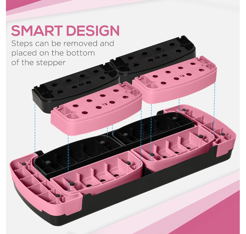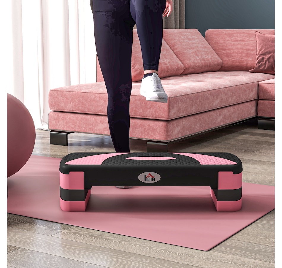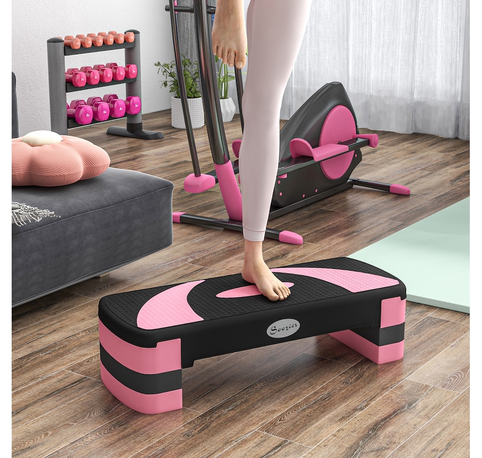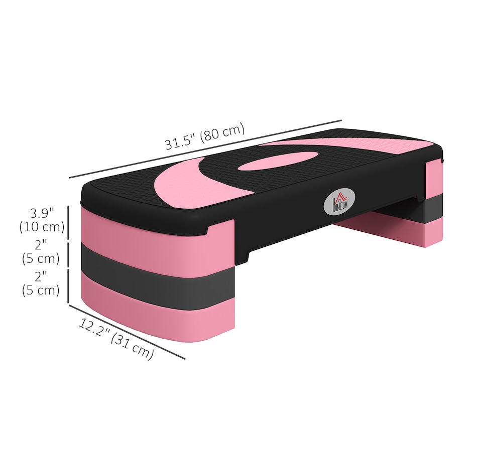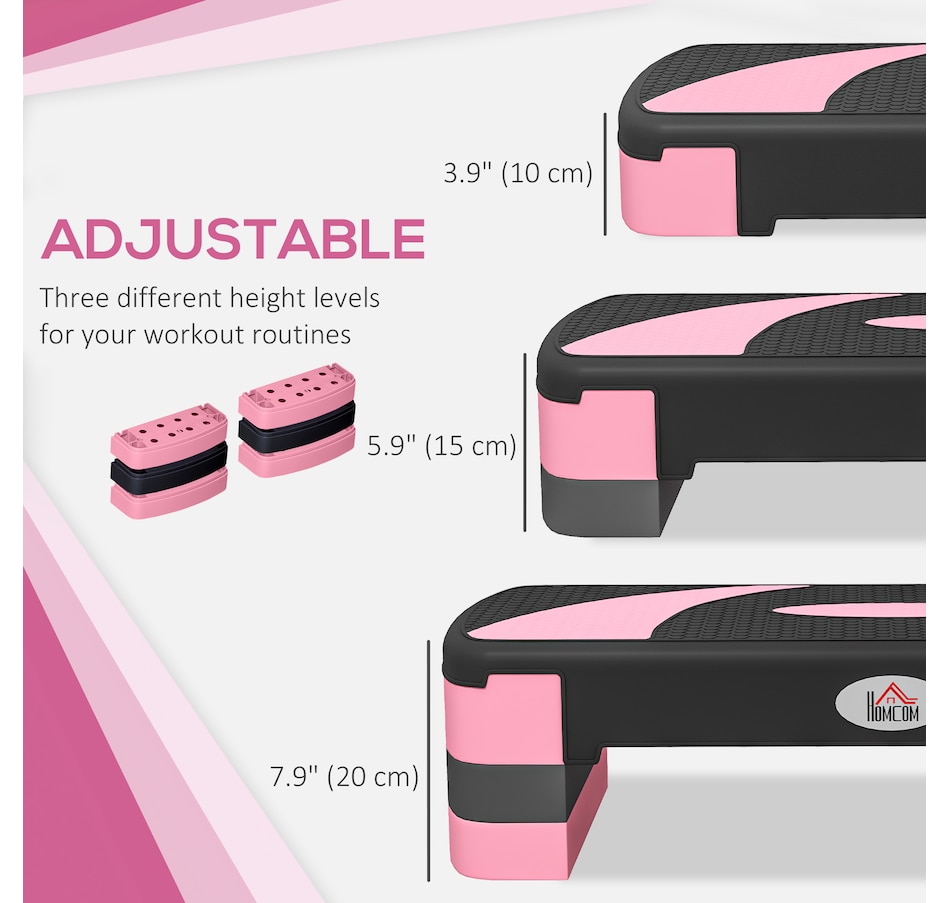 Adjustable Aerobic Stepper, Exercise Step Platform, 4"-6"-8", Pink