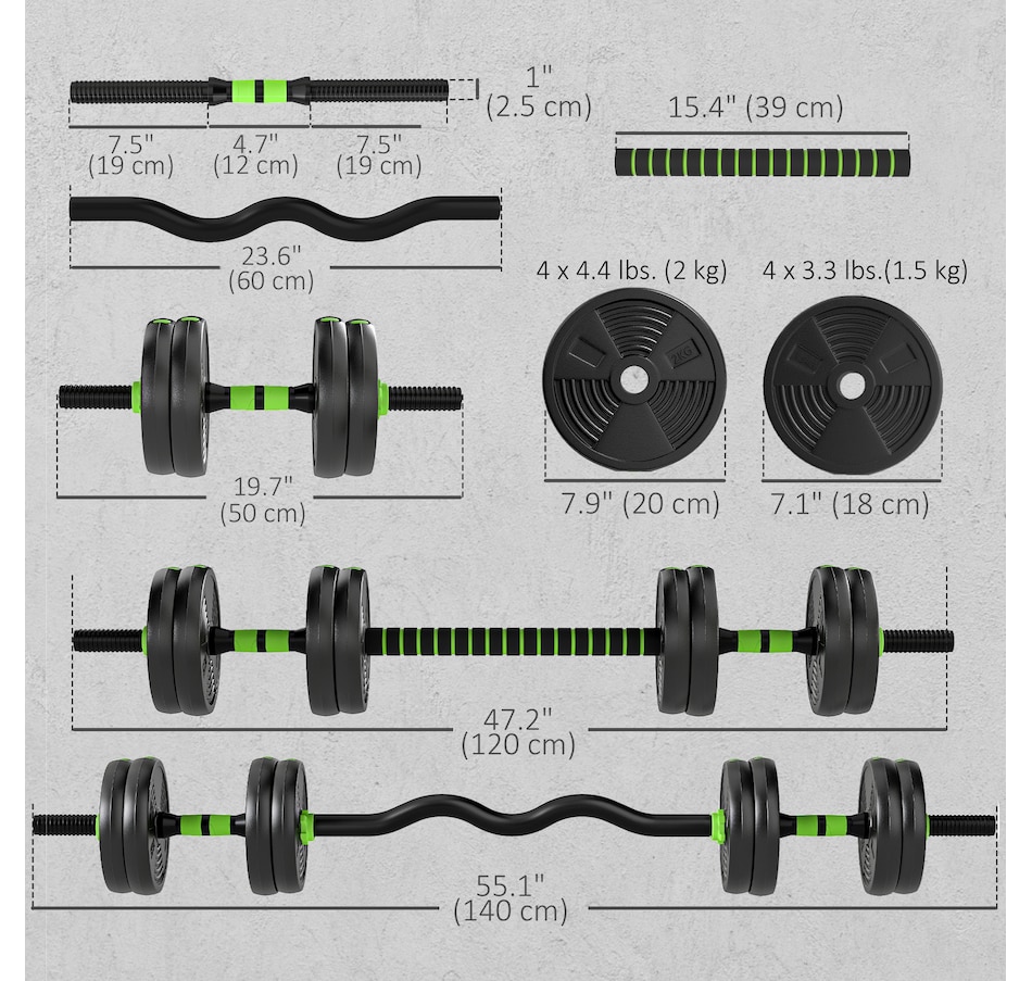● Dumbbell Bar Dimensions: Dia. 1" x 19.7" L (Dia. 2.5 x 50 cm);
