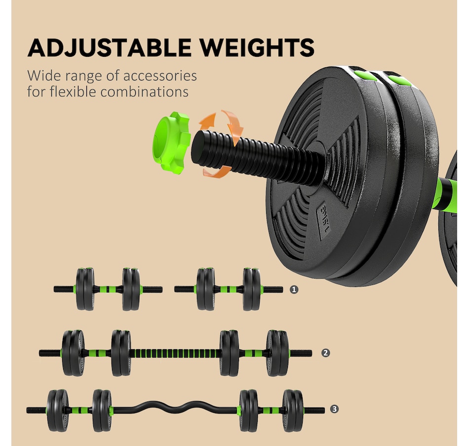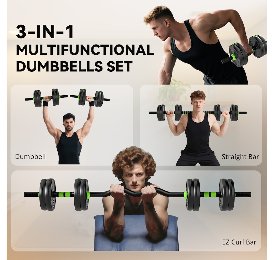 Upgrade your home training with the Soozier 3-in-1 multifunctional dumbbells set. Designed for maximum versatility, this set easily converts between dumbbells, a straight barbell, and an EZ curl bar - great for full-body strength training. With sand-filled PVC weight plates and textured anti-slip handles, it suits both beginners and experienced users. Compact and easy to assemble, this weights dumbbells set is great for apartments, home gyms, and limited spaces.Features: