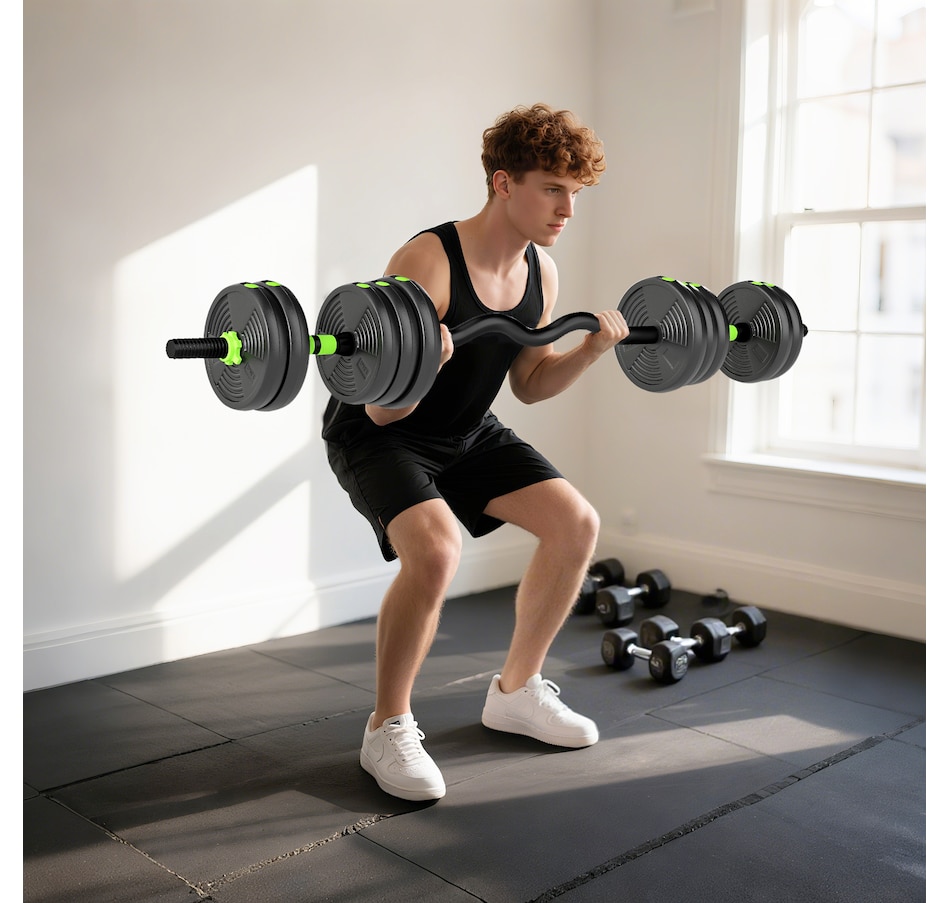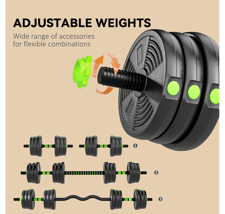 Upgrade your home training with the Soozier 3-in-1 multifunctional dumbbells set. Designed for maximum versatility, this set easily converts between dumbbells, a straight barbell, and an EZ curl bar - great for full-body strength training. With sand-filled PVC weight plates and textured anti-slip handles, it suits both beginners and experienced users. Compact and easy to assemble, this weights dumbbells set is great for apartments, home gyms, and limited spaces.Features: