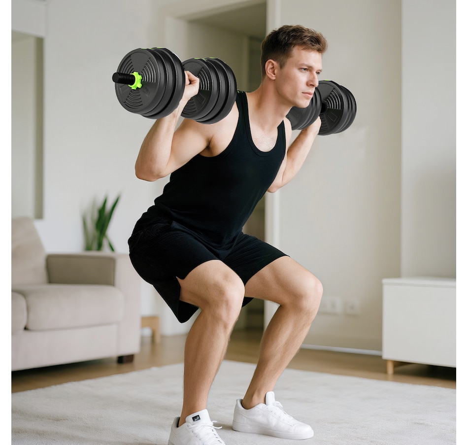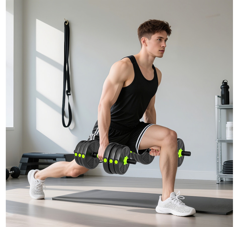 Upgrade your home training with the Soozier 3-in-1 multifunctional dumbbells set. Designed for maximum versatility, this set easily converts between dumbbells, a straight barbell, and an EZ curl bar - great for full-body strength training. With sand-filled PVC weight plates and textured anti-slip handles, it suits both beginners and experienced users. Compact and easy to assemble, this weights dumbbells set is great for apartments, home gyms, and limited spaces.Features: