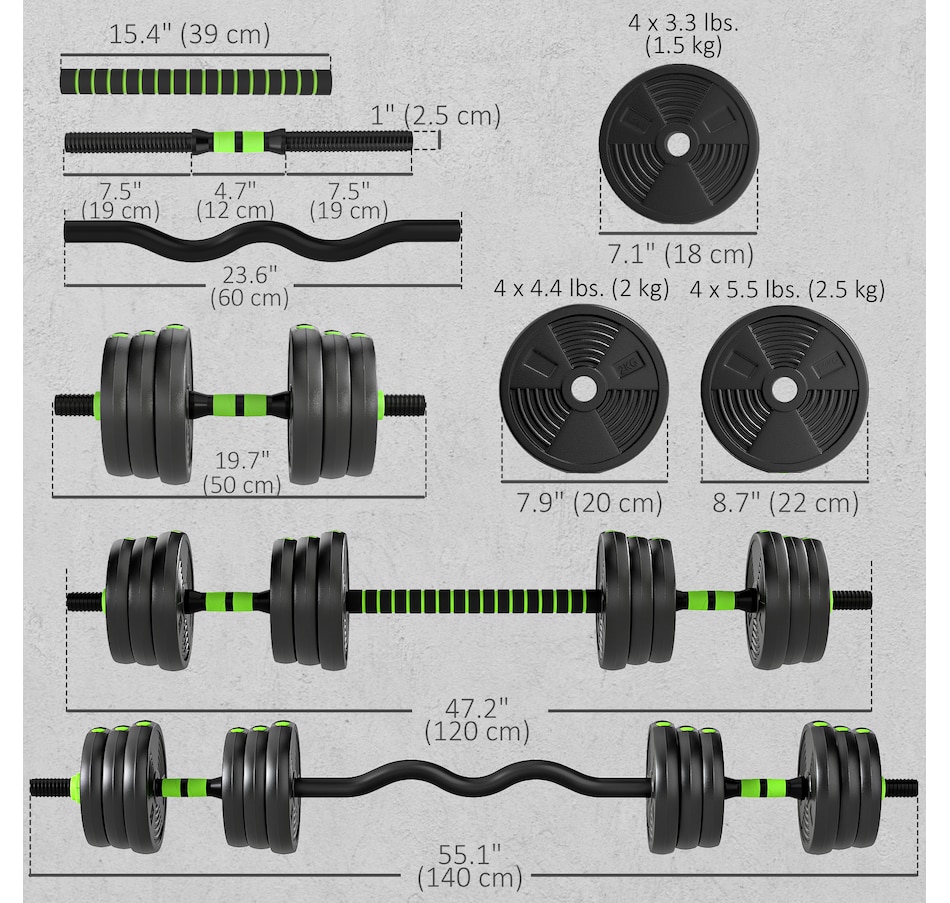 ● Dumbbell Bar Dimensions: Dia. 1" x 19.7" L (Dia. 2.5 x 50 cm);