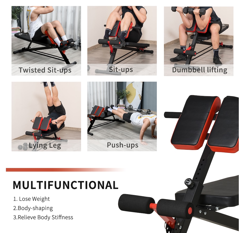 ● Can perform hyperextension, side bend, sit-ups, reverse crunch, Dumbbell row, Dumbbell press and more.