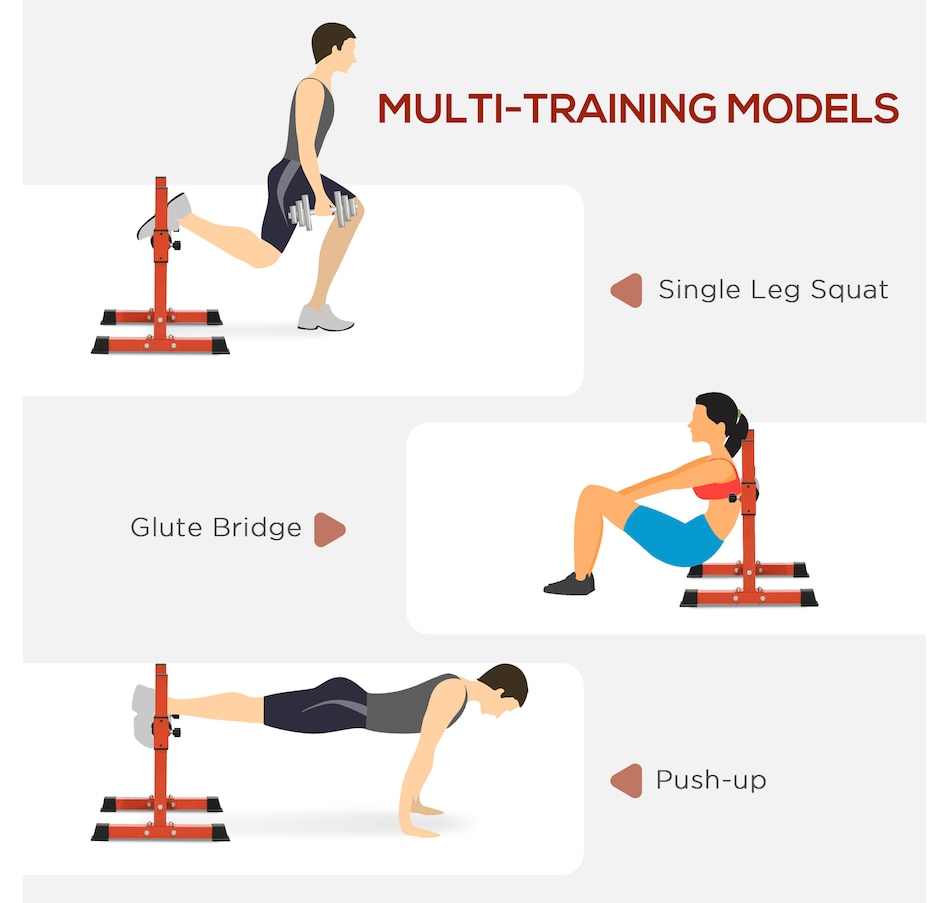 ● Can help you do single-leg squats, pushups, glute bridges, and planks at home