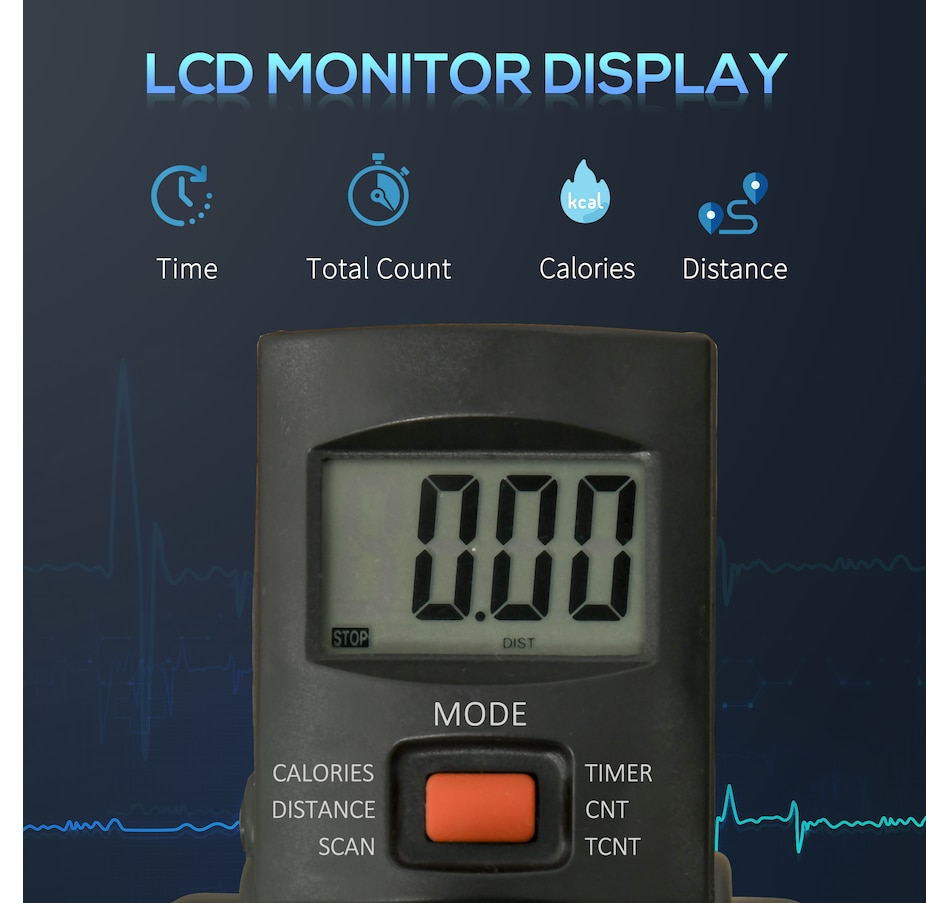 ● Electronic display for time, number of revolutions, distance, and calories burned;Specifications: