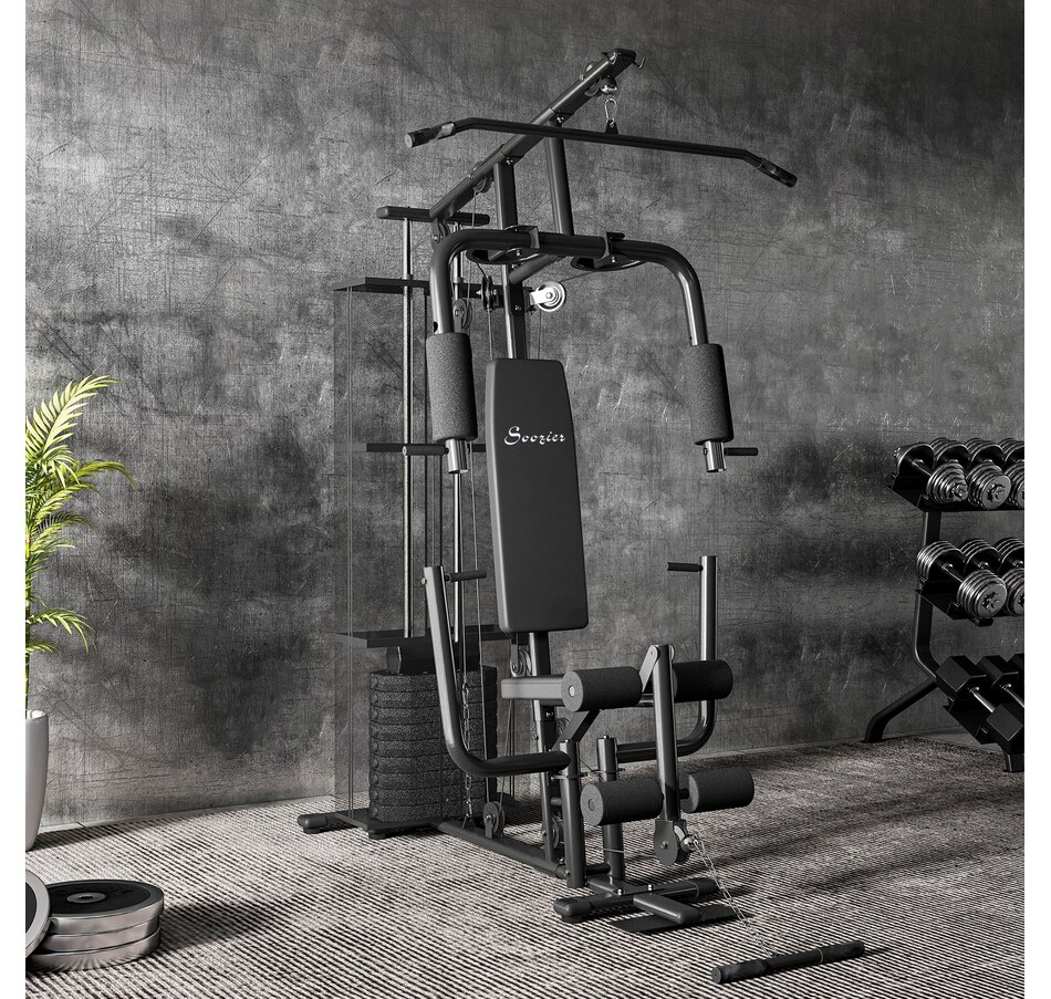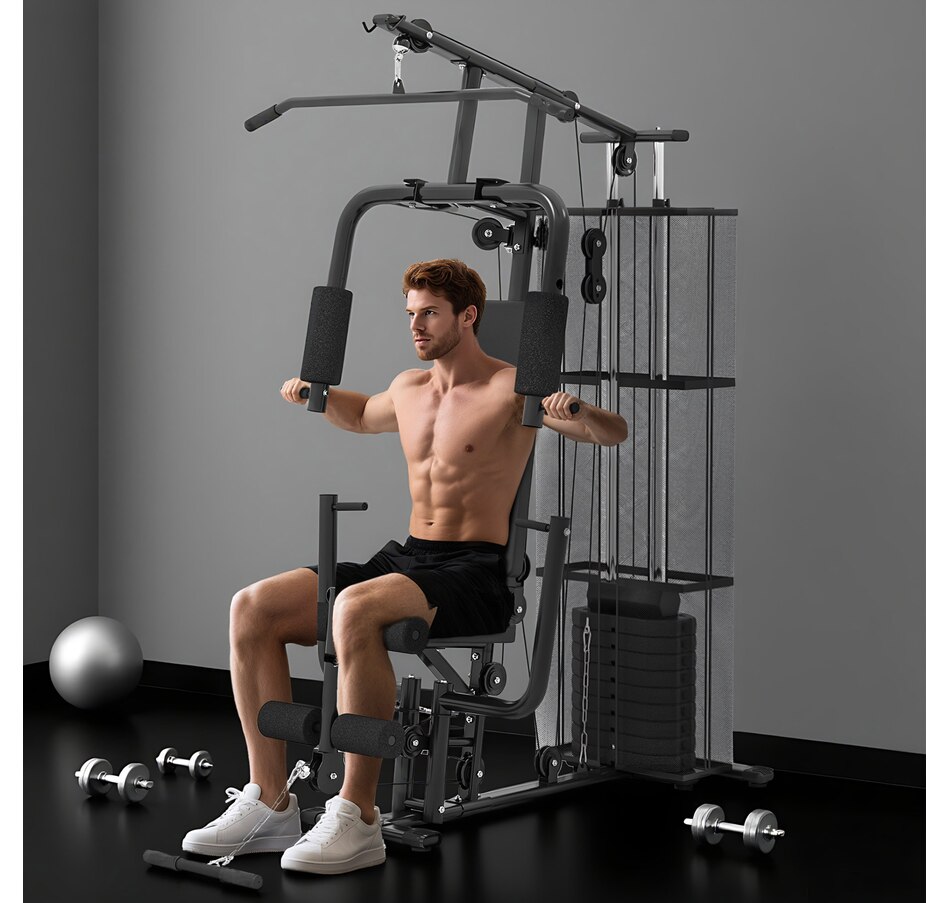Multifunction Home Gym Equipment with 100Lbs Weight Stack, Black