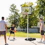 Enjoy shooting hoops with this Soozier outdoor basketball hoop. It has an adjustable height, so it's suitable for all heights – everyone can join the fun. A steel frame for strength and durability, whilst the base can be filled with water or sand, keeping it firmly in place. Wheels at the bottom let you move the stand easily, which can be placed in the proper position. Enjoy the swooshing sound of the ball passing through the net.Features: