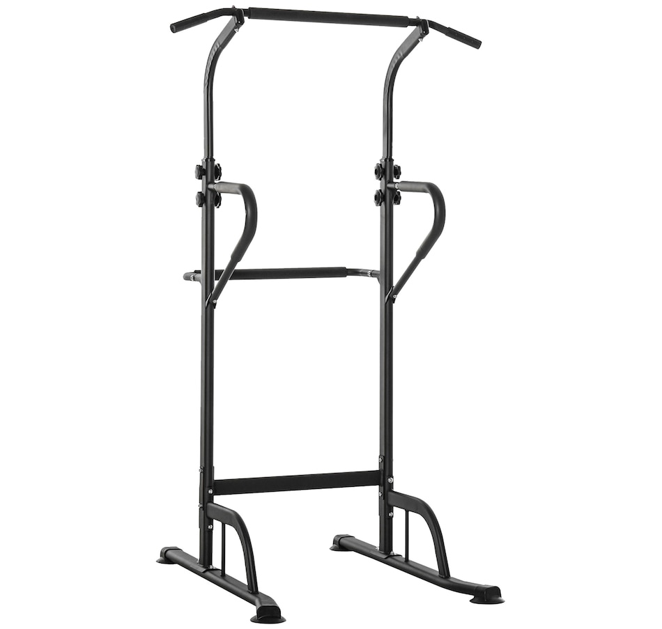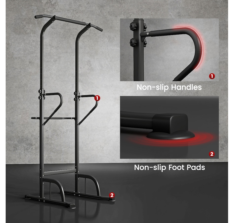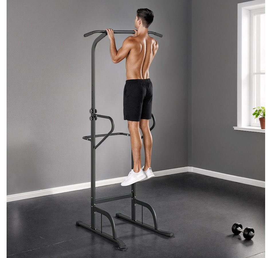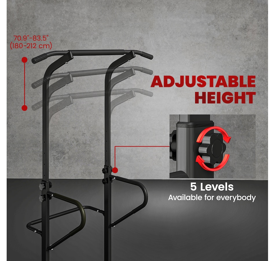 Multi-Function Power Tower Dip Station with Adjustable Height Black