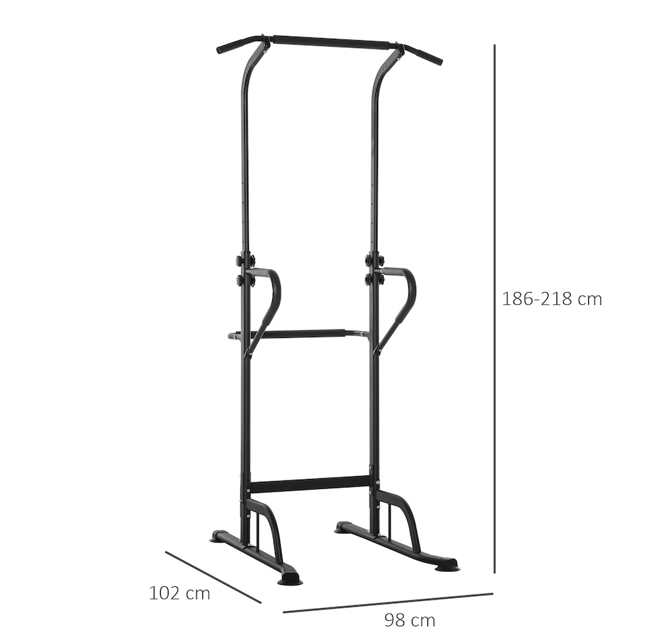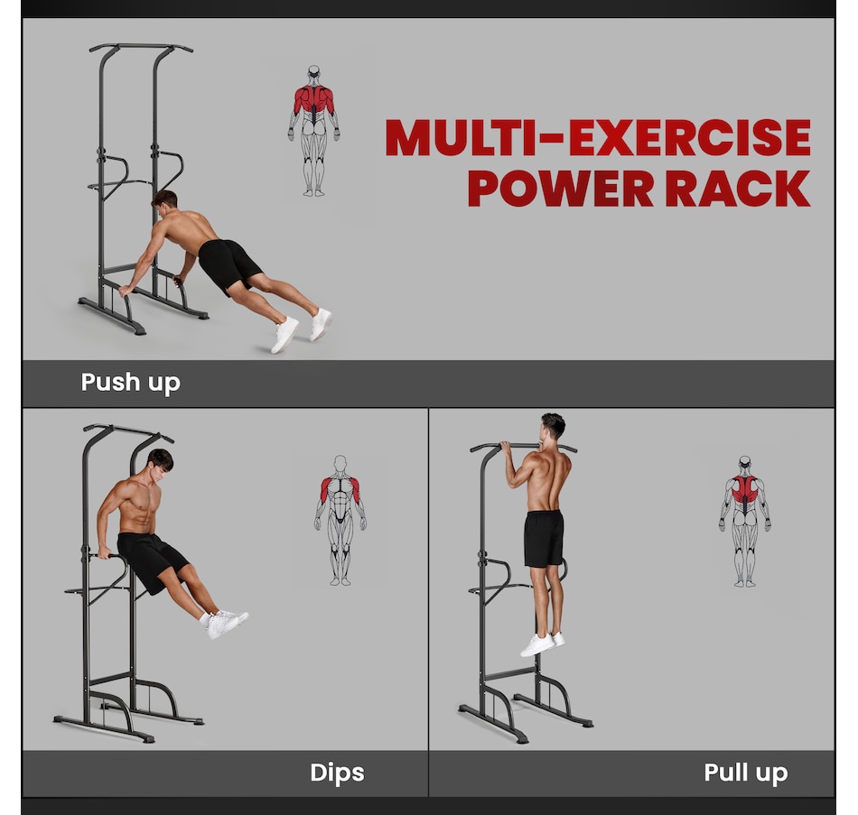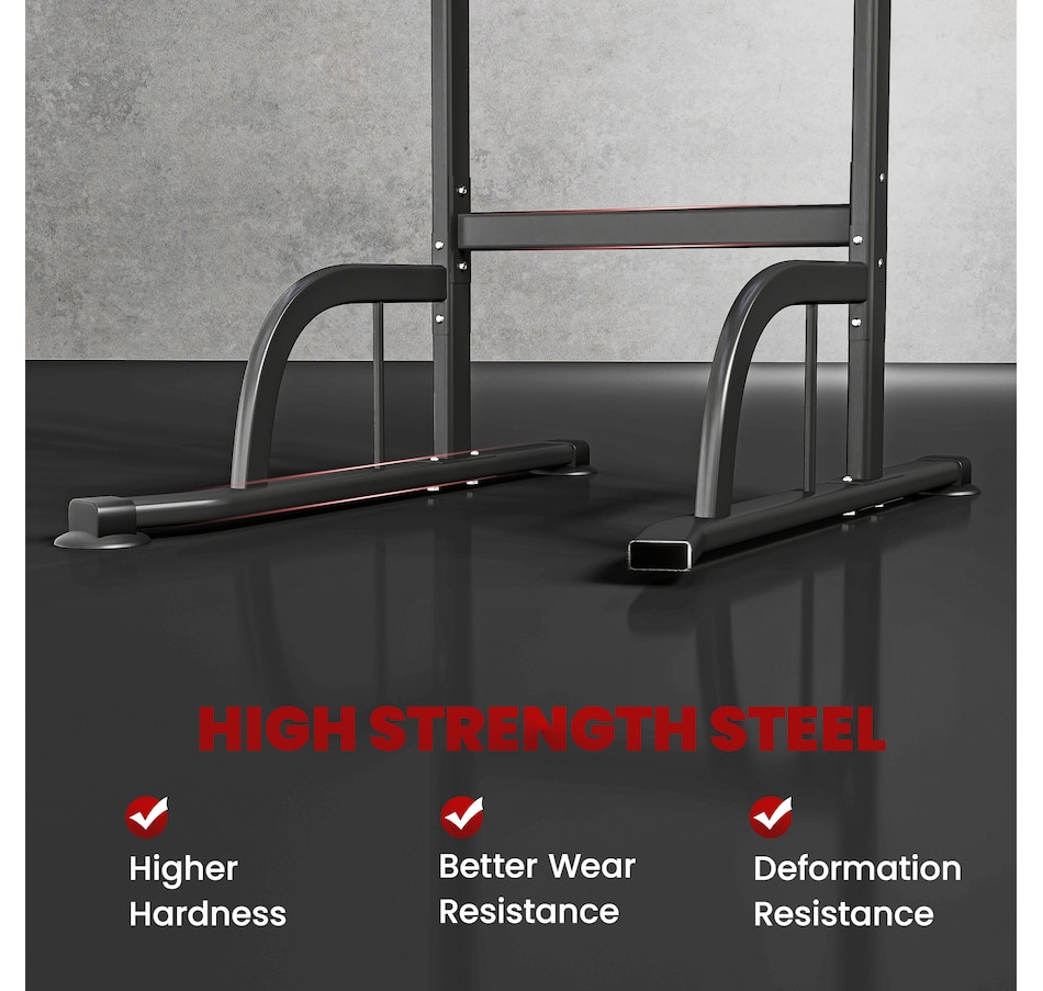 This multi-function power rack from Soozier is your new favourite workout partner. Can be used for working on the biceps, triceps, back, abdominal core, legs and shoulders - a full body focus. The dip bar height is adjustable for safety and to help utilize this equipment as effectively as possible. It's made from steel so it's tough and weight supportive up to 264 lbs (120 kg), finished with foot pads to protect your floor.Features:
