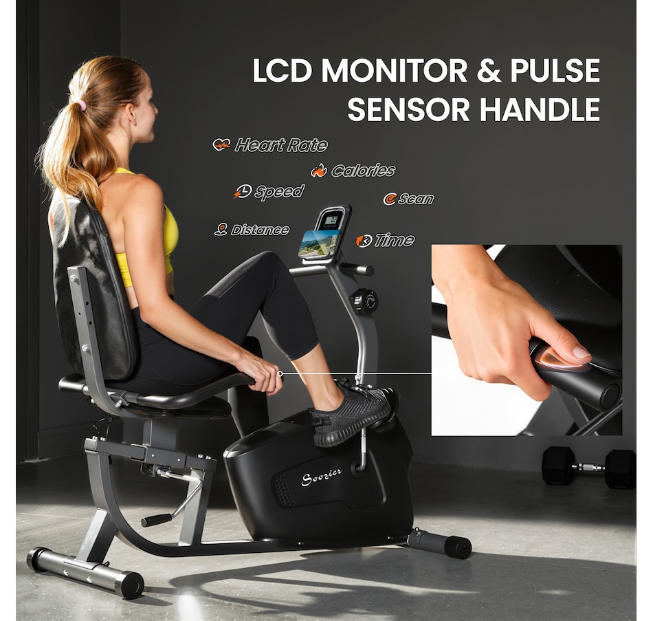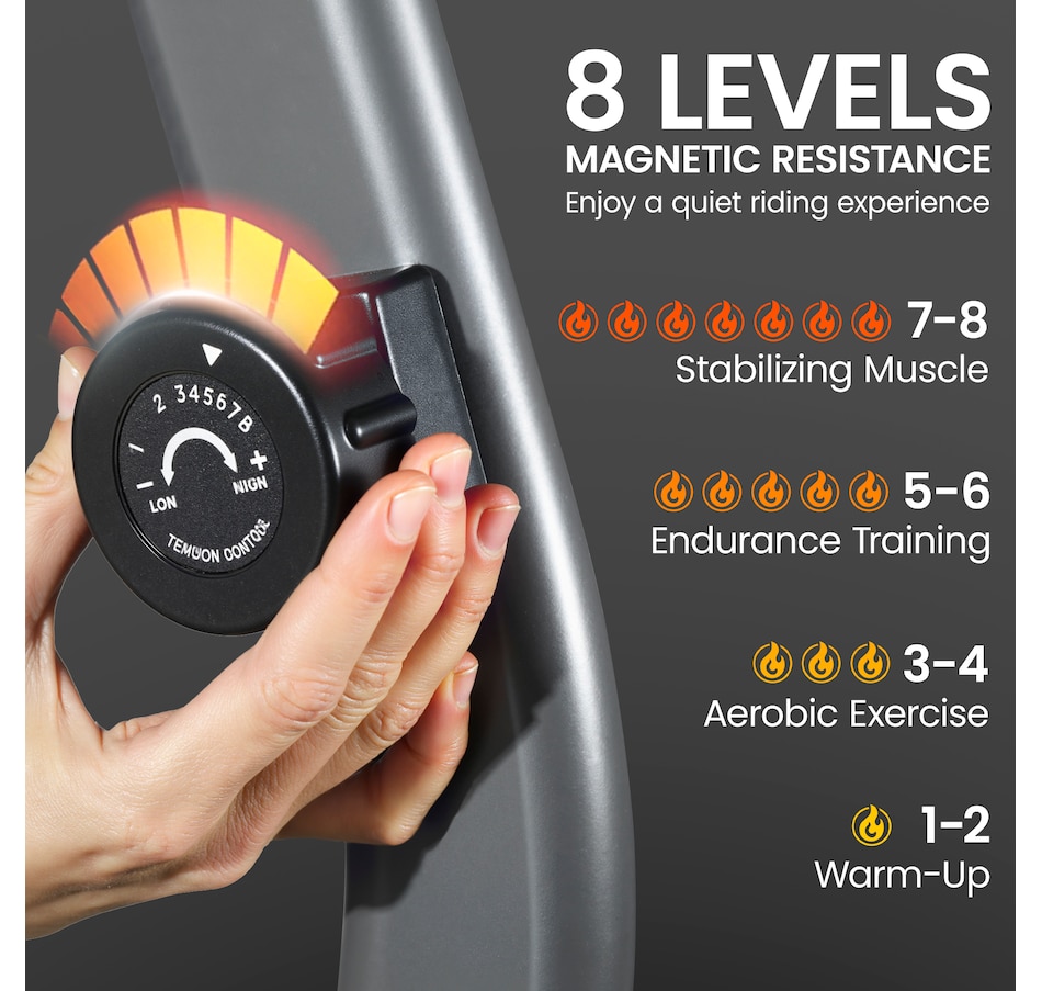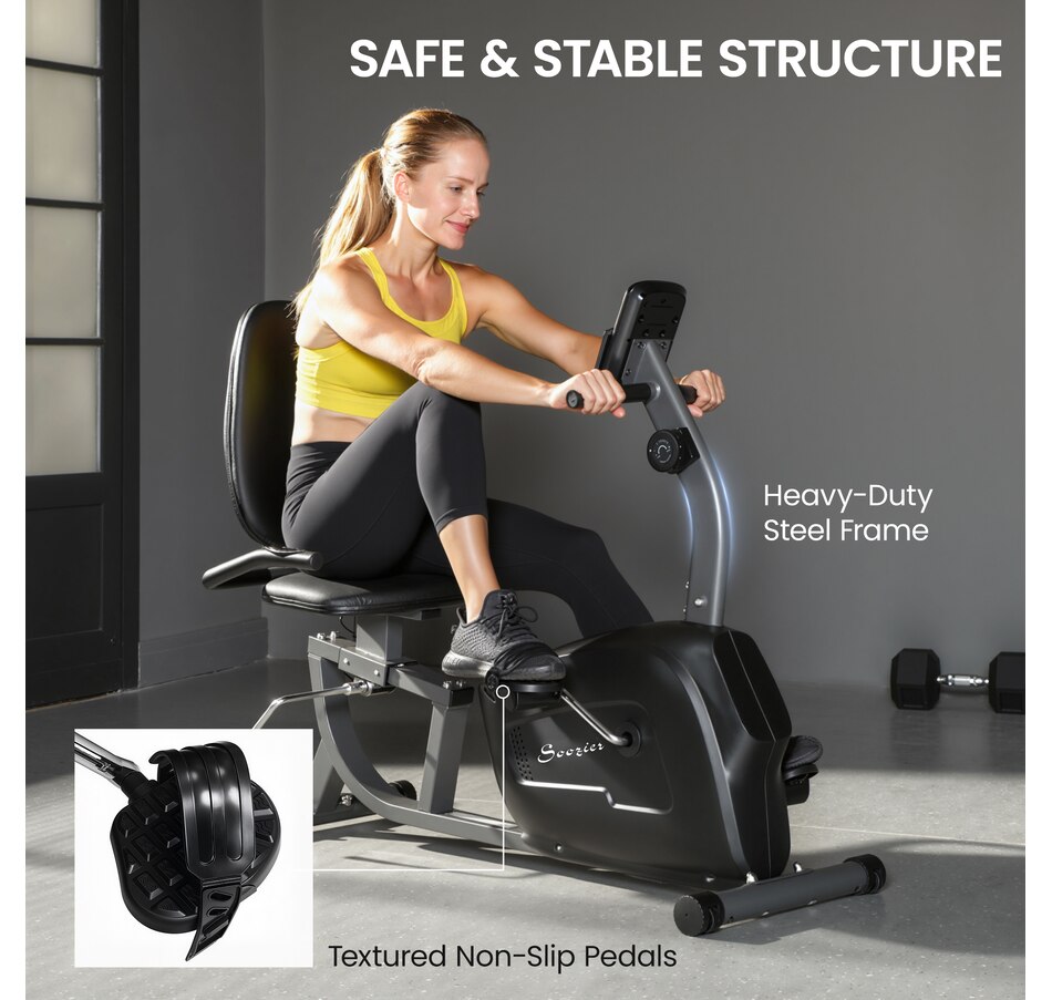 Recumbent Exercise Bike, 8-Level Magnetic Stationary Bike for Home