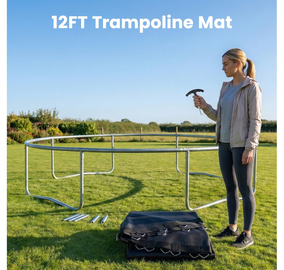 Do you want to avoid dealing with frequent replacement of trampoline mat? Look no further! Our Soozier mat will meet all your needs. Meticulously stitched mat is built to last, allowing for bigger jumps and providing endless excitement. To ensure the great fit, please measure the size of your trampoline frame, count the number of springs and measure the length of the unstretched springs. Our replacement mat fits a 12-foot round trampoline with 72 V-rings using 5.5" (14cm) springs.