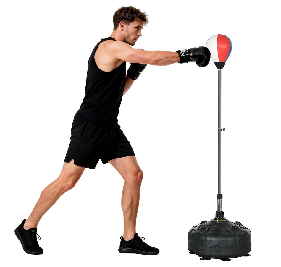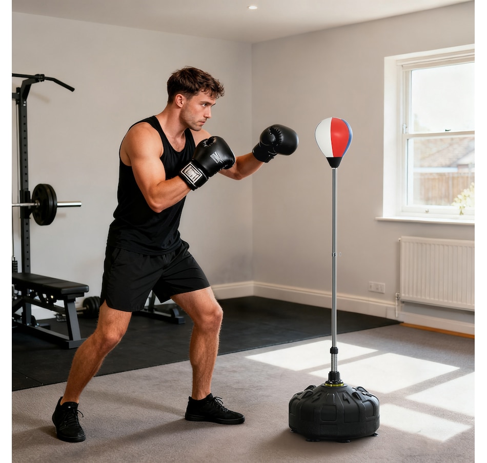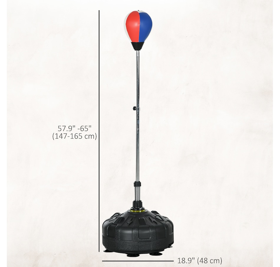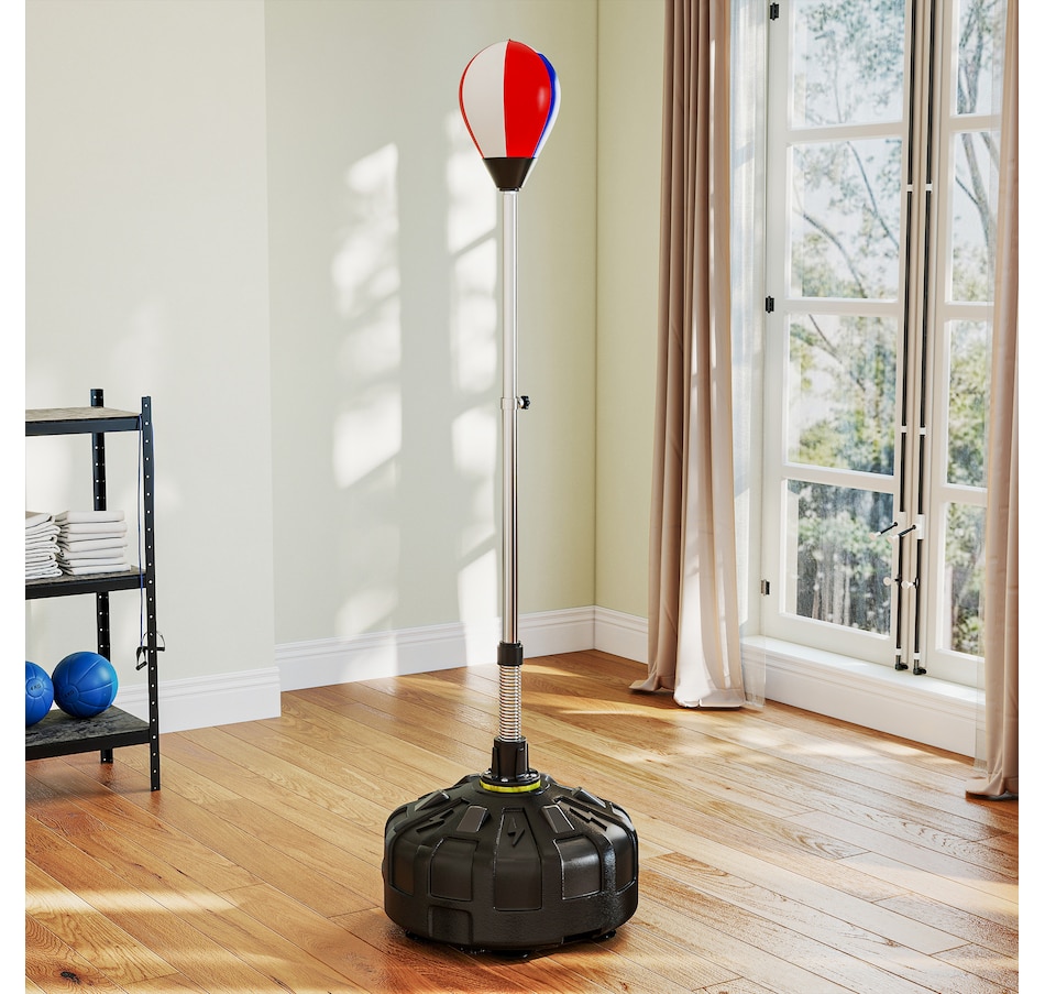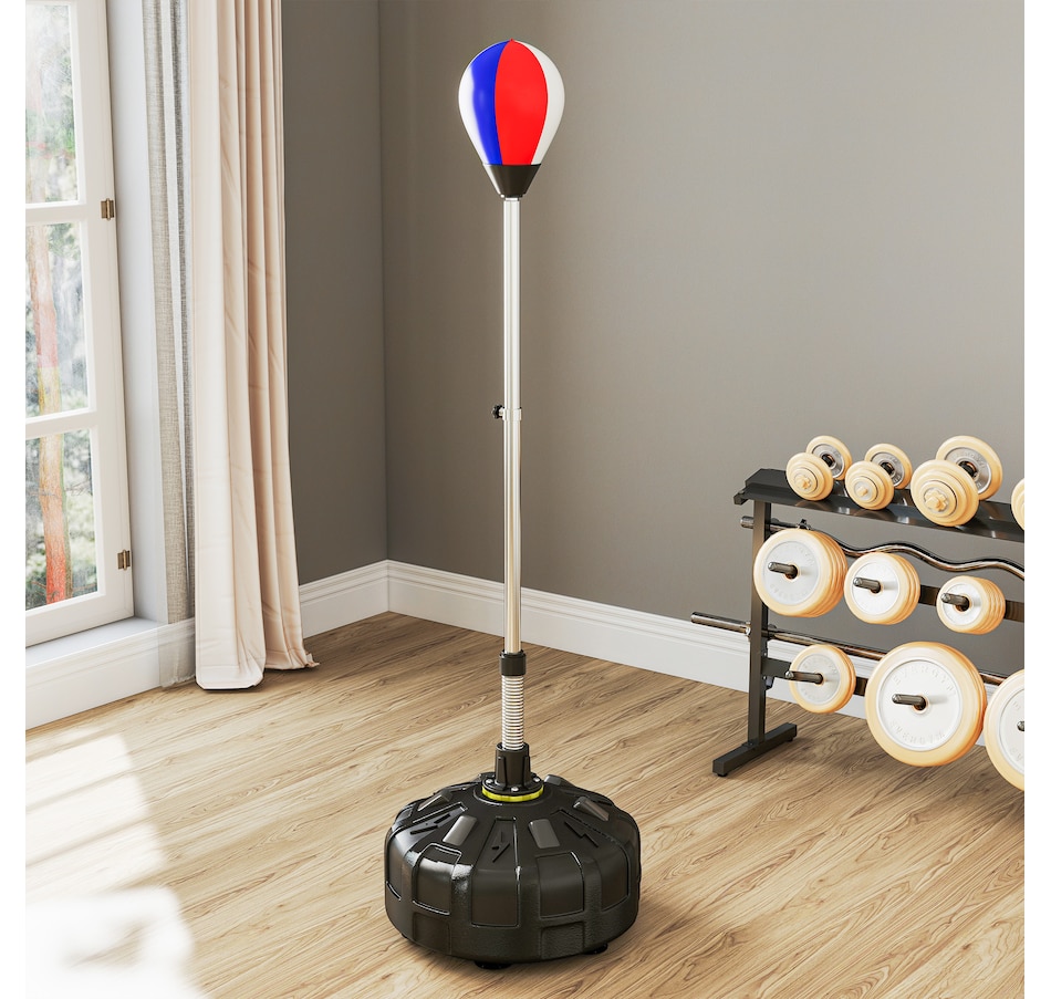 This quick-reflex cardio and strength training equipment from Soozier is a fitness-boosting friend. The boxing equipment is built for improved reaction time, accuracy, precision and agility. The pole is adjustable to suit different heights, a fillable base to keep it weighted down whilst in action. The spring base allows it to flex and flip back into position for a total workout. The suction cups attach to the ground to prevent toppling in cases of powerful, fast-moving arm movements.Features: