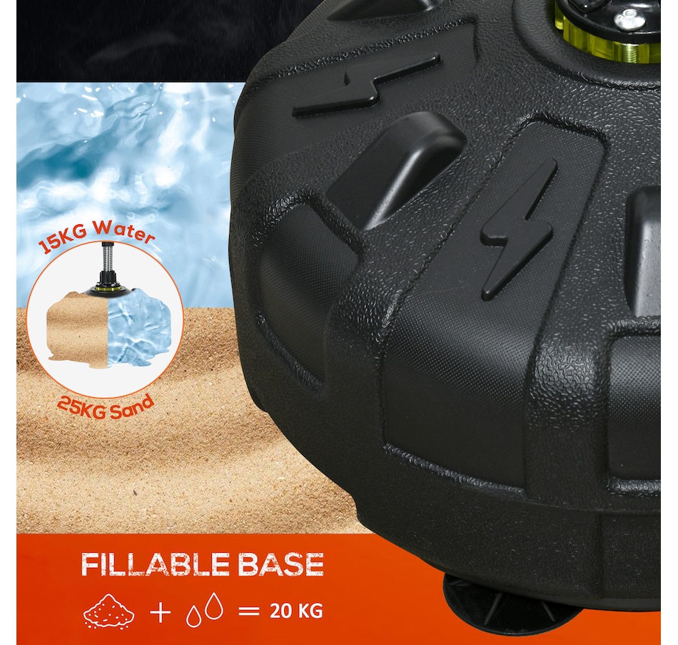 ● Base fills with 33lbs (15kg) water, 55lbs (25kg) sand or 44lbs (20kg) mixture of both;