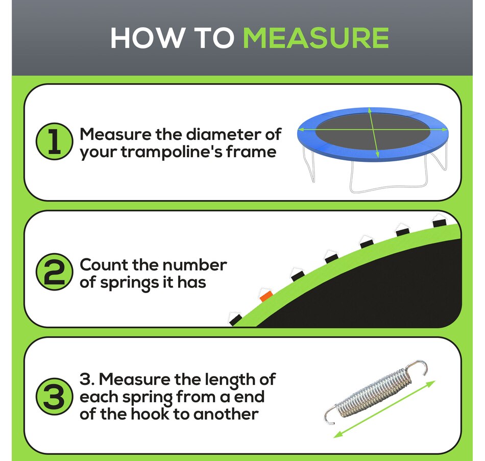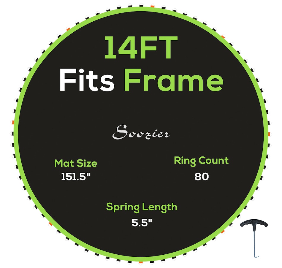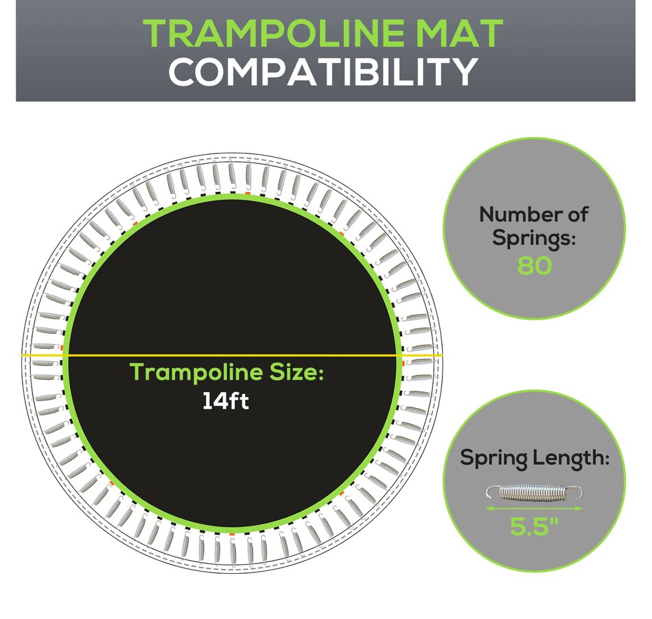 ● Fits a 14' round trampoline with 80 V-rings, and 5.5" (14cm) springs;
