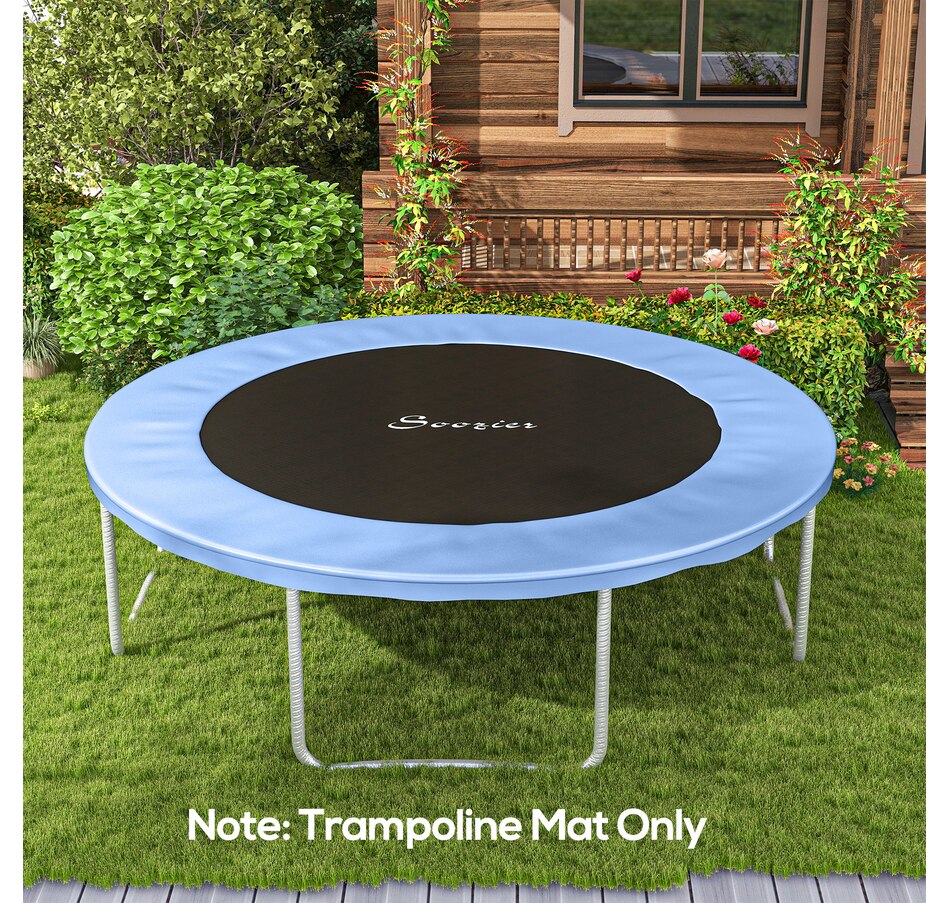 Looking to bring the bounce back to your trampoline frame? With a Soozier trampoline replacement mat, it's easy. Our replacement mat is for a 14' trampoline with 80 V-rings and 5.5" (14cm) springs. Check if your trampoline meets these conditions, and you'll be in the air in no time. Woven with eight rows of stitching and a UV-resistant coat, it's built to endure outdoor conditions to bring you bigger jumps so friends can get outside and get some exercise. Bounce big with Soozier.