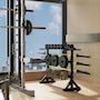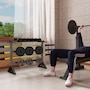 ● Includes a dumbbell layer, 3 barbell holders, and 7 plate posts;