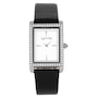 • Silver or Black dial with pavé Swarovski crystals; Stick markers at 12, 3, 6, 9