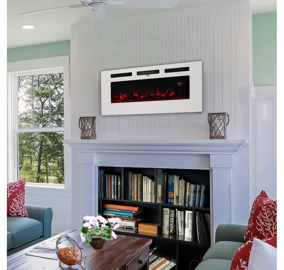 Enjoy the warmth and ambiance of a traditional fireplace with none of the mess or maintenance with a real one with the stylish Sophisticated Hearth electric fireplace heater. Featuring a versatile design, this lightweight indoor fireplace can be installed in a recess or mounted to a wall in the bedroom, living room, or office. It features a durable steel frame with a beautifully clear flat-tempered glass front panel with a digital LED display. Choose between a stylish faux log bed or elegant decorative crystals. Plus, it features a variety of heat and display options to create the right cozy atmosphere. It features 3 flame color options, 5 flame/log bed brightness levels, adjustable settings from 62 to 82 degrees Fahrenheit, and a 1- to 8-hour timer. This fireplace also comes with a remote control, making it easy to adjust the heat and light settings. Add colorful warmth to the living area and relax year-round.