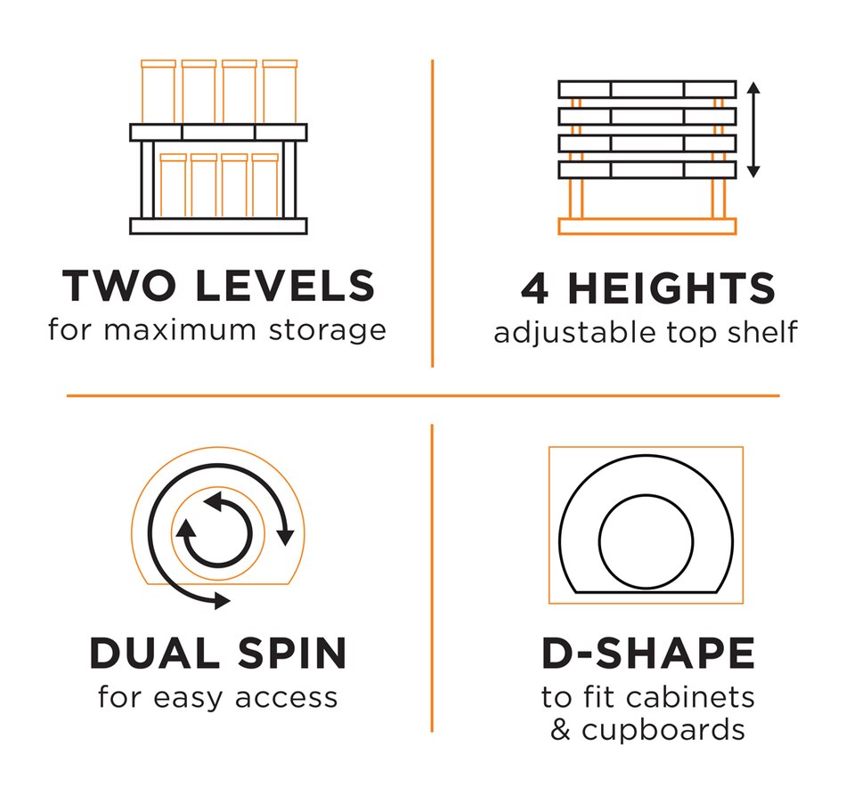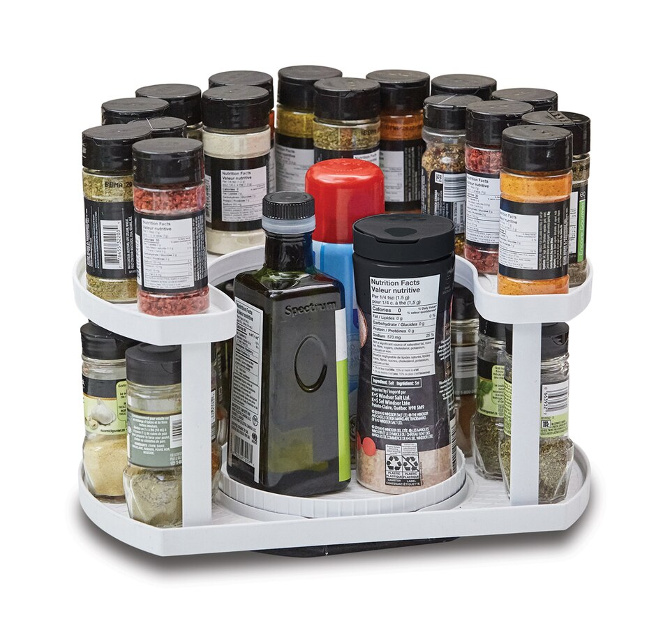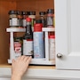 This cabinet organizer can help you maximizes storage space for spices and can hold up to 40 spice bottles.