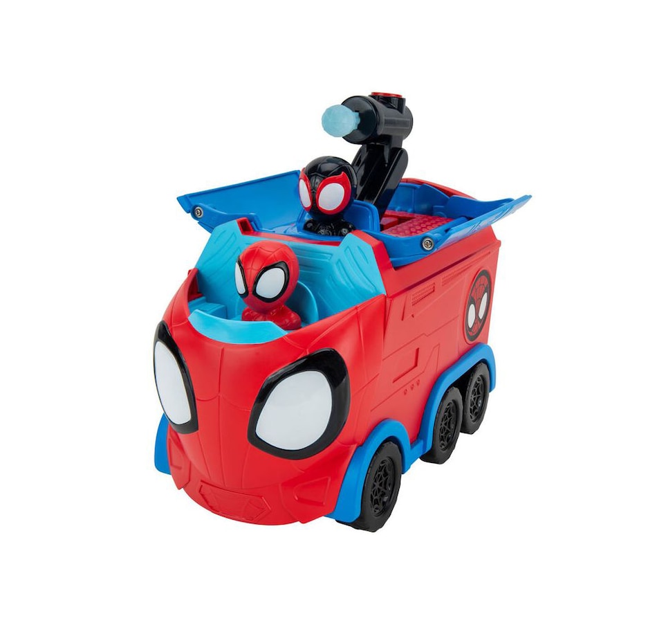 Save the city with the Spider Friends and their amazing web spinning hauler. Join Spidey, Ghost-Spider and Miles Morales: Spider-Man as they chase down villains inside this 8" 3-in-1 transforming hauler. Spidey takes the wheel as Ghost and Miles operate two web dart launchers. Spin the dial on the hauler’s rear to the correct symbol and either Ghost or Miles will emerge from the roof with their own web dart launcher. Press the button on each launcher to blast out a web dart at any villain. Spin the dial back to the Spidey symbol and the hauler’s roof will close as Spidey maintains pursuit. Collect this transforming 3-in-1 vehicle and more Marvel’s Spidey and His Amazing Friends toys.