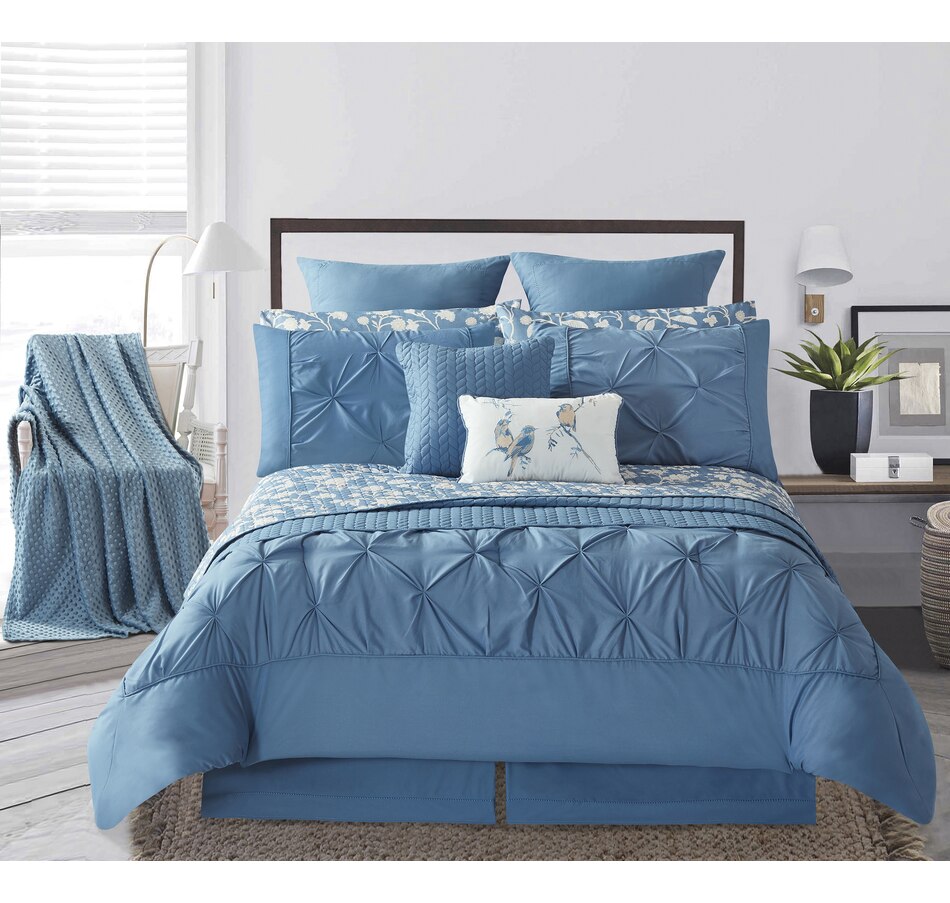 • Three-sided skirt is tailored with split corners which fit around the sides and foot of the bed