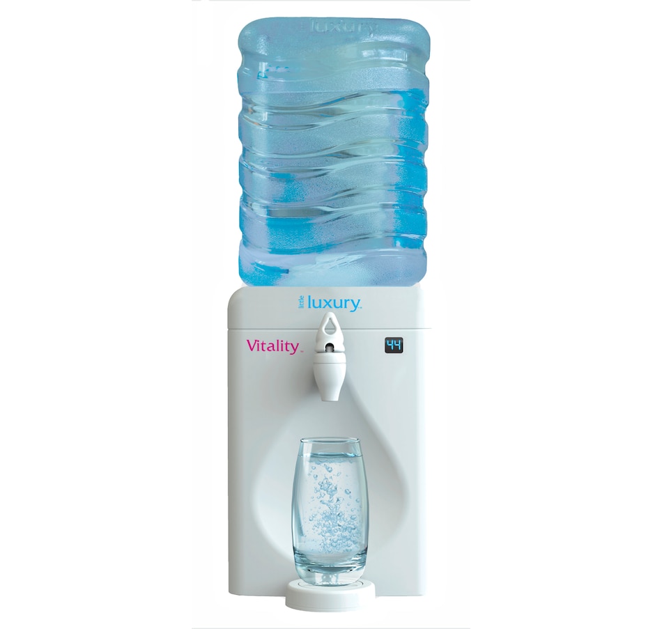 The Little Luxury Vitality Mini Water Cooler is an award-winning revolutionary filtration and cooling system that quenches your thirst anytime and anywhere by supplying you with great-tasting premium filtered water on demand! This compact cooler and filter turns regular tap water into ice cold filtered water and is easy to use.