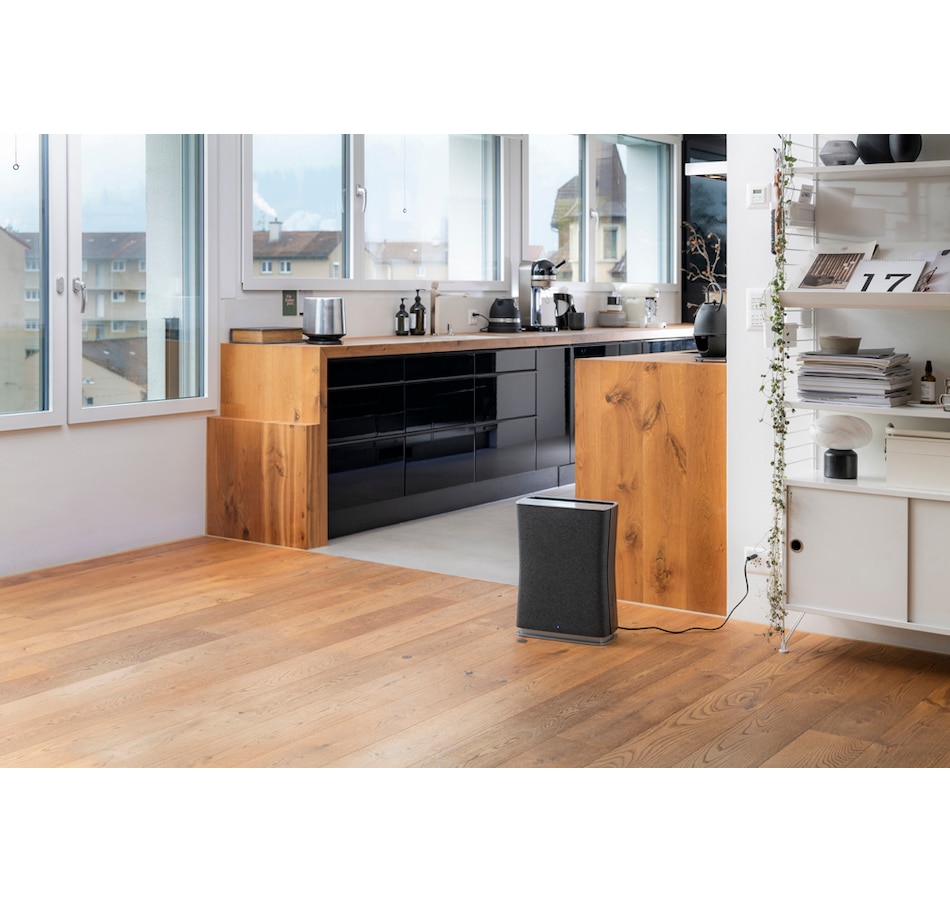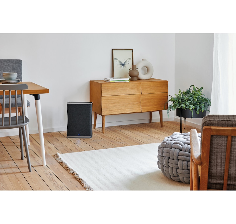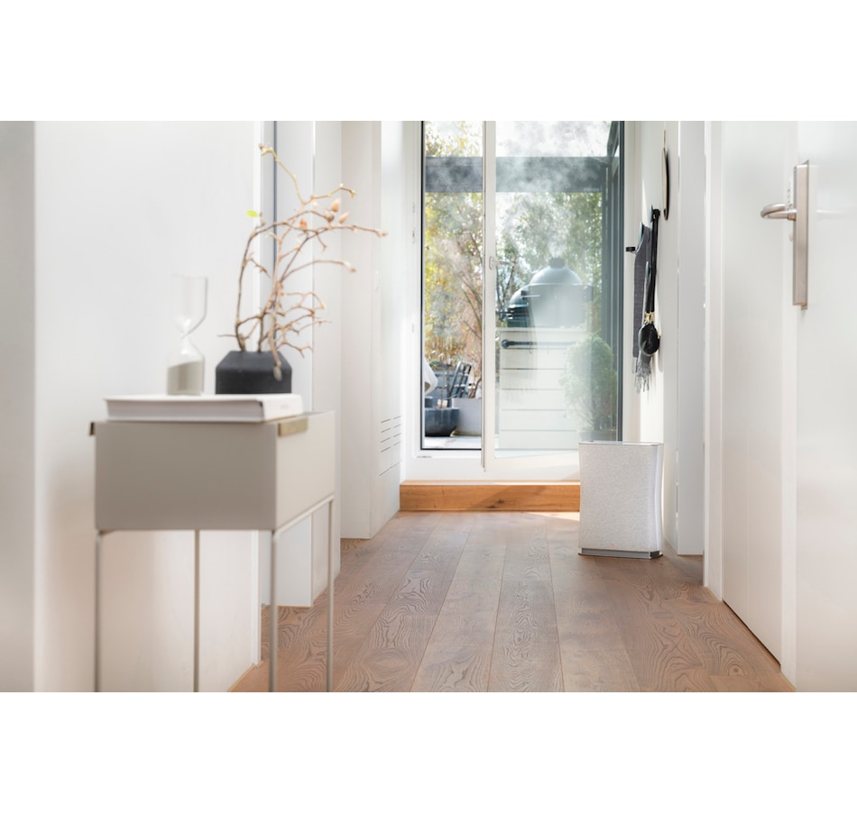 Roger Little—the quiet, efficient air purifier for rooms of up to 355 square feet—filters pollutants and gases, ensuring clean and healthy indoor air. It continuously measures the quality of the air and immediately detects gaseous pollutants such as unpleasant smells or volatile organic compounds (VOCs). If the air quality deteriorates, the air quality indicator changes colour. If the intelligent auto mode is also activated, this mobile room air purifier will adjust its cleaning performance automatically to meet the current needs. The more polluted the air, the higher the chosen level of performance will be. The elegant air purifier is equipped with a washable textile pre-filter which removes coarse dust particles and pollutants from the air and has an integrated sanitized hygiene function. At the heart of the air purifier is the Dual Filter—a combination of an H12 HEPA filter and an activated carbon filter. The highly efficient HEPA filter removes pollutants such as fine dust, pollen, viruses and bacteria from the air while the activated carbon filter adsorbs gases present in the air.