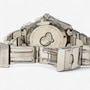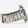 The crisp white dial is accented with luminescent hour markers, offering excellent legibility in all lighting conditions. A bold Arabic numeral at the 12 o'clock position adds a clean and sporty aesthetic, while a date window at 3 o'clock provides everyday utility without cluttering the dial. Encircling the dial is a unidirectional rotating bezel, engraved with Arabic numeral markers, designed to measure elapsed time, an essential feature for diving and timing activities.
