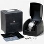 The watch is protected by a scratch-resistant sapphire crystal and is equipped with a screw-down crown and case back, ensuring its durability in challenging conditions. With a water resistance rating of 300 meters (30 ATM), the Aquaracer is more than ready for swimming, snorkeling, and even recreational diving. Inside, the watch is powered by a Swiss-made quartz movement (ETA F06.111), renowned for its accuracy and reliability. Its slim profile and battery-powered convenience make it a low-maintenance companion for daily wear or travel. The watch comes with the original box, instruction manual, card and 3 extra links. The original purchase date was Jan. 31, 2009.