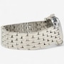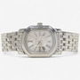Gracefully balancing elegance and precision, this Tiffany & Co. Mark Coupe timepiece showcases a refined, sophisticated design in a compact and wearable format. The case has a sleek stainless steel tonneau (barrel) shape, a gentle curve and classic profile ideal for refined tastes. The silver-coloured dial has a beautiful guilloché textured surface embellished with Roman numeral hour markers, delivering timeless clarity and a heritage aesthetic.