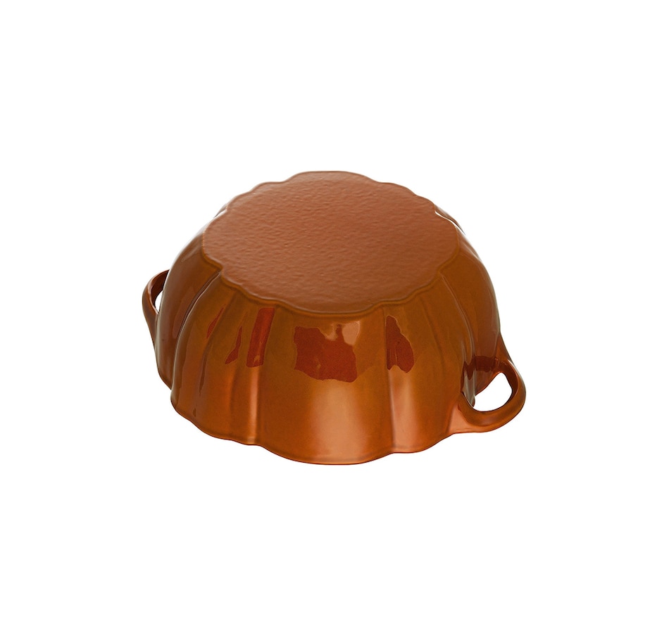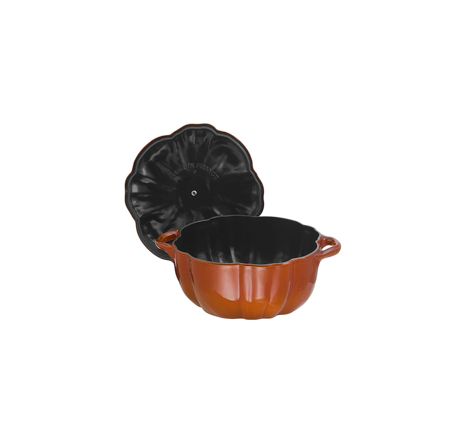 The Staub Cast Iron Pumpkin Cocotte was designed not only for collectors, but for those who would like to bring a little whimsy to their table! This cocotte is more than mere decoration—it's an heirloom-quality Dutch oven, cast and enameled in France by skilled artisans. The interior enamel features Staub's proprietary textured matte finish, which promotes browning.
