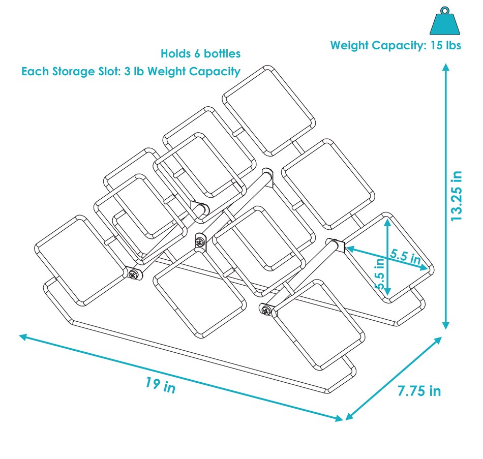 - Holds up to 6 wine bottles securely
