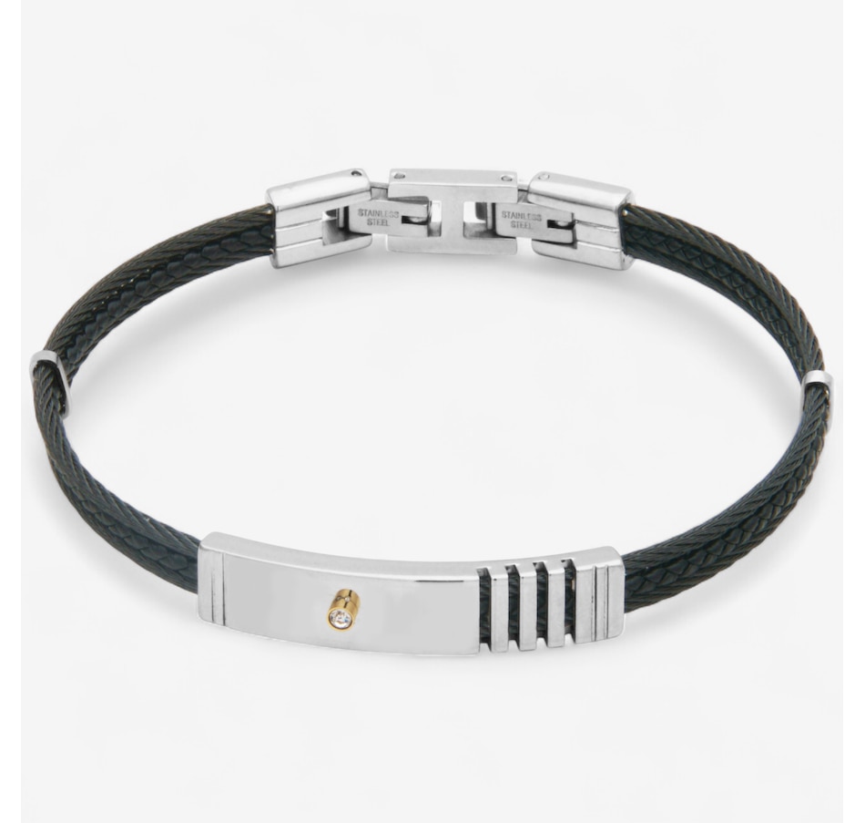 2-mm IP Black Wire Bracelet with White Cubic Zirconia 8''