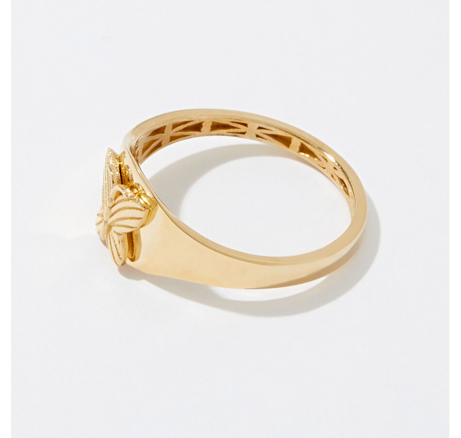• High polished ring with butterfly design center