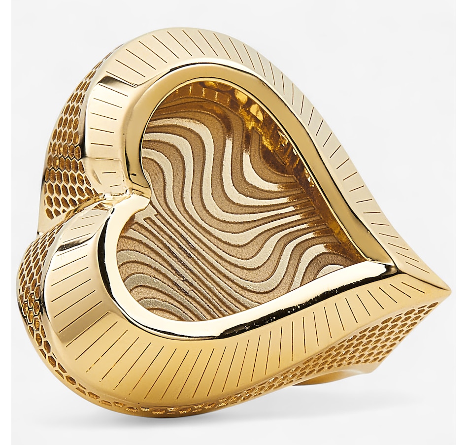 Elevate your look in irresistible style wearing this mirage Ricami heart ring from Stefano Oro.