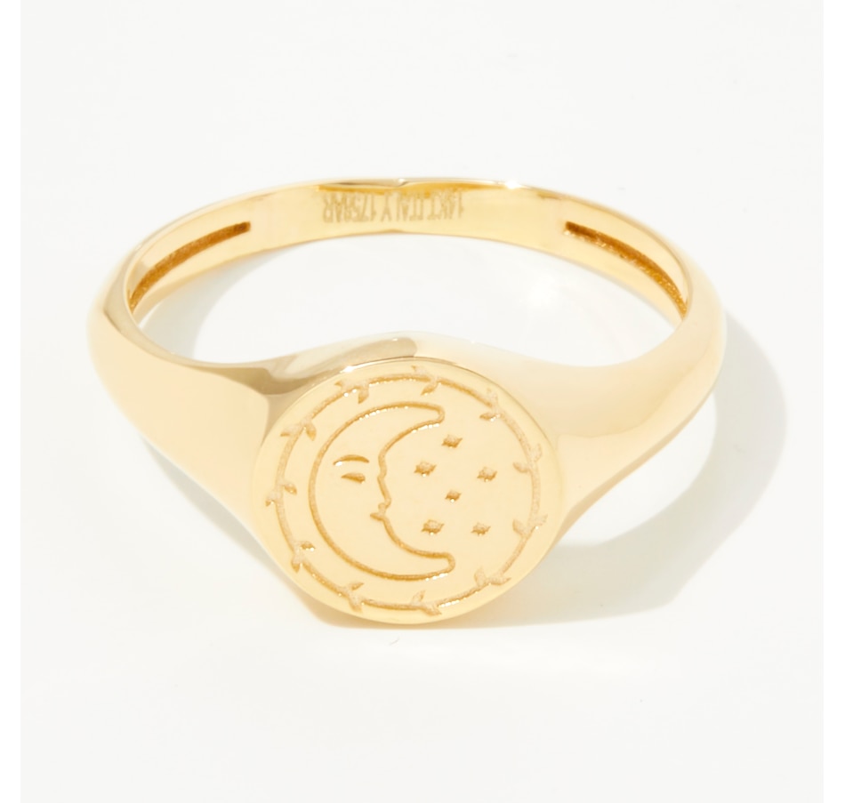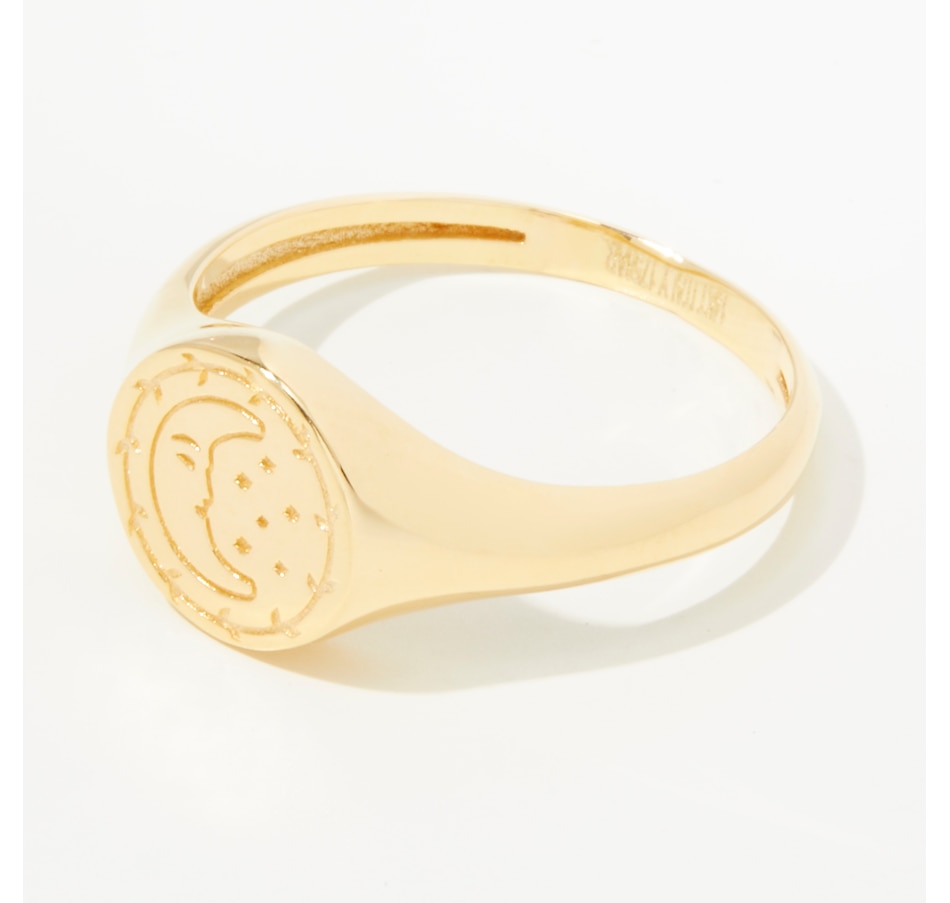 Add something beautiful and distinguished to finish your look with this gold moon signet ring from Stefano Oro.