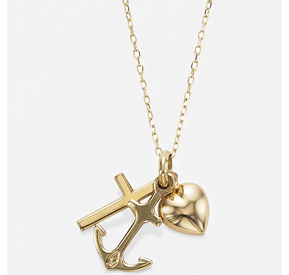 14K Yellow Gold Triple Charm Necklace