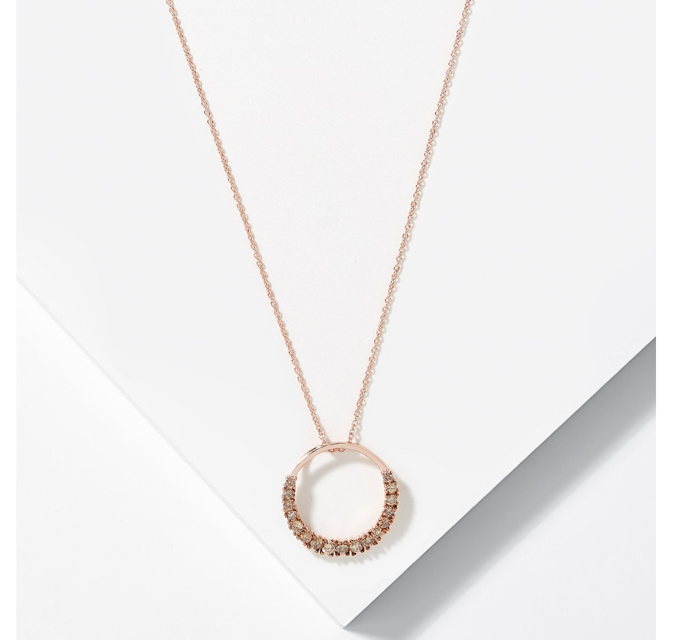 • (17) round shape, prong set and faceted champagne diamonds- 0.75 av. ctw